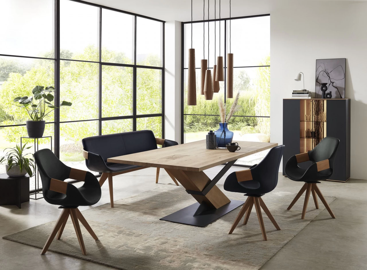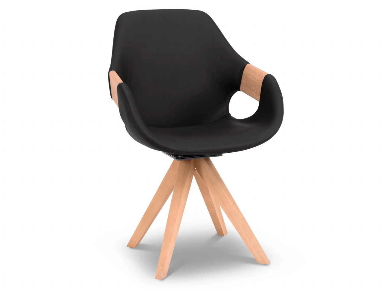 Zeigen Sie Stil mit dem modernen Armlehnstuhl Naturzeit Basti der Marke hartmann. Die ergonomisch geschwungene Sitzschale ist komfortabel gepolstert und mit einem hochwertigen Leder bezogen. Das stabile Fußgestell ist aus massiver, gebürsteter Kerneiche gefertigt. Die Kerneiche findet sich als dekorative Applikation an den Armlehnen wieder. Das Gestell verfügt über eine Drehrückholfunktion und die Sitzhöhe beträgt angenehme 49 cm. Mit einem hochmodernen Design wird dieser Armlehnstuhl sowohl zum komfortablen, als auch zum optischen Highlight. Wählen Sie Ihre liebste Farbe aus verschiedenen, eleganten Lederbezügen.