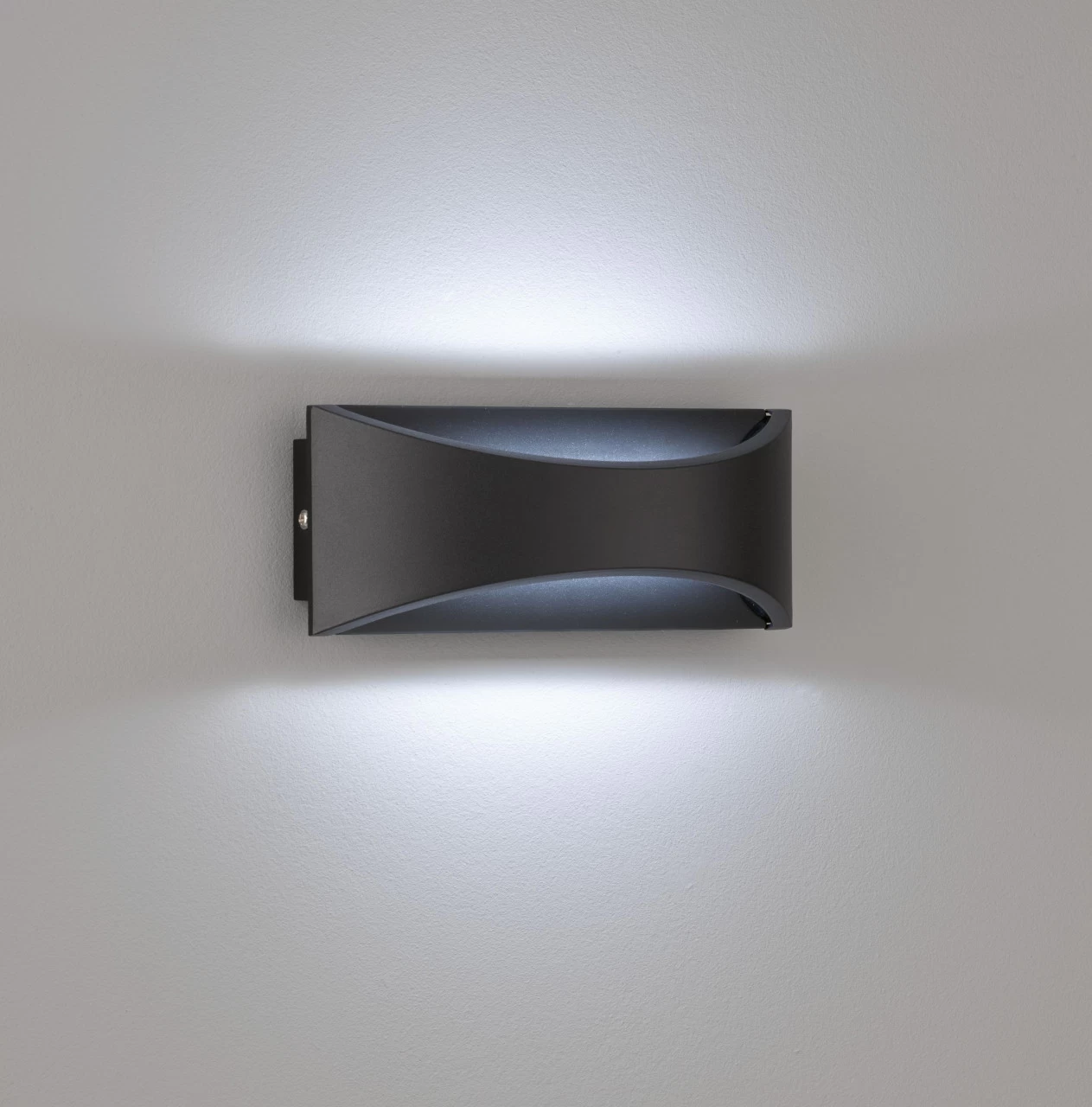 · RAFFINIERTE HAUSBELEUCHTUNG: Diese Außenleuchte fällt vor allem durch ihr formschönes Design ins Auge. Der Kontrast zwischen eckiger Grundform und halbrundem Schirm ist sehr dekorativ.