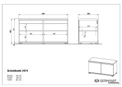 · Schuhbank mit zwei Türen, jeweils ein verstellbarer Einlegeboden (belastbar bis zu 10 kg), Oberboden kurzfristig belastbar bis zu 90 kg, Unterboden belastbar bis zu 20 kg, Edelbuche-Nb. mit Applikationen im Dekor Anthrazit, vier eckige Kunststofffüße, Türdämpfung, hochwertige ABS-Kanten, griffloses Design, Platz für ca. 8 Paar Schuhe, Made in Germany.