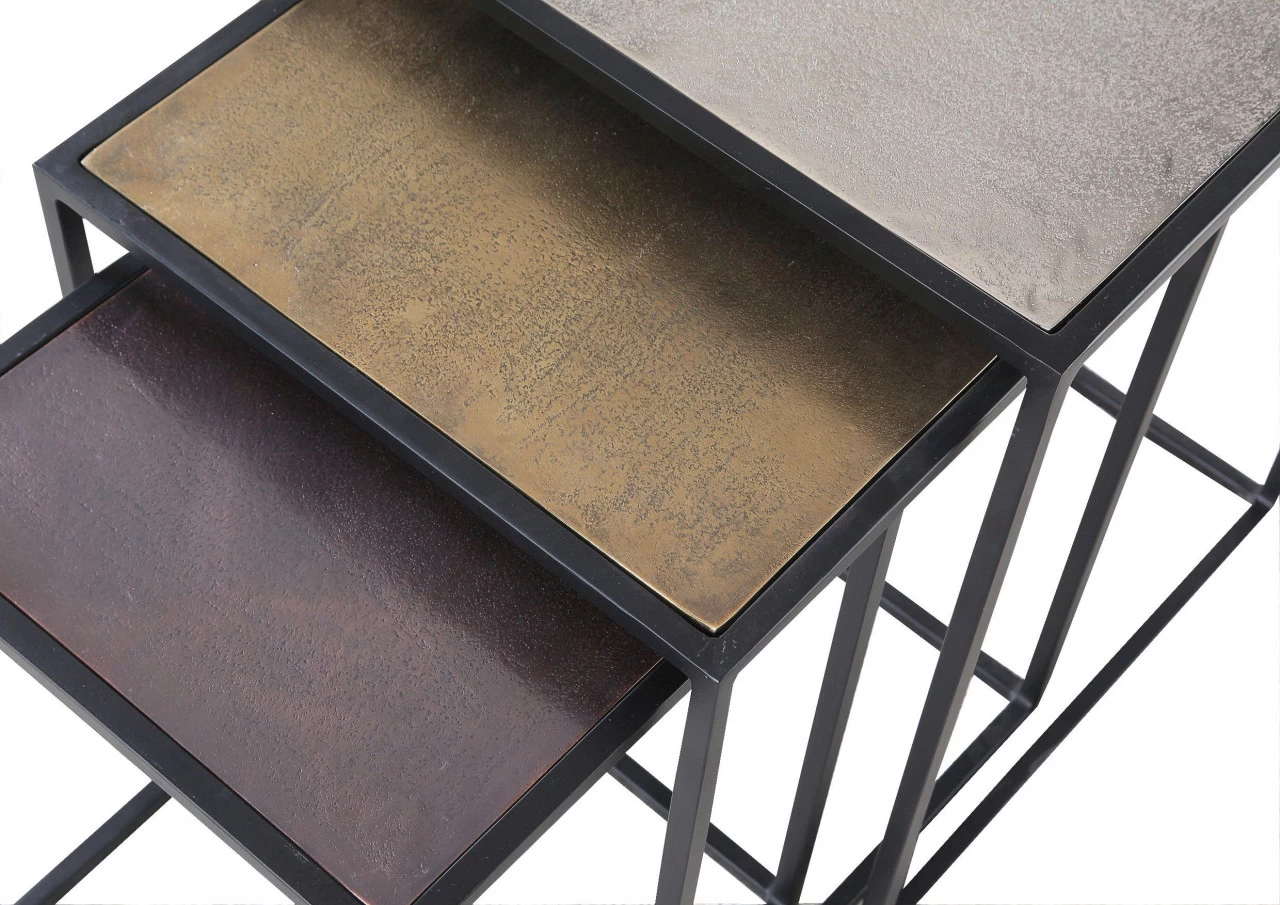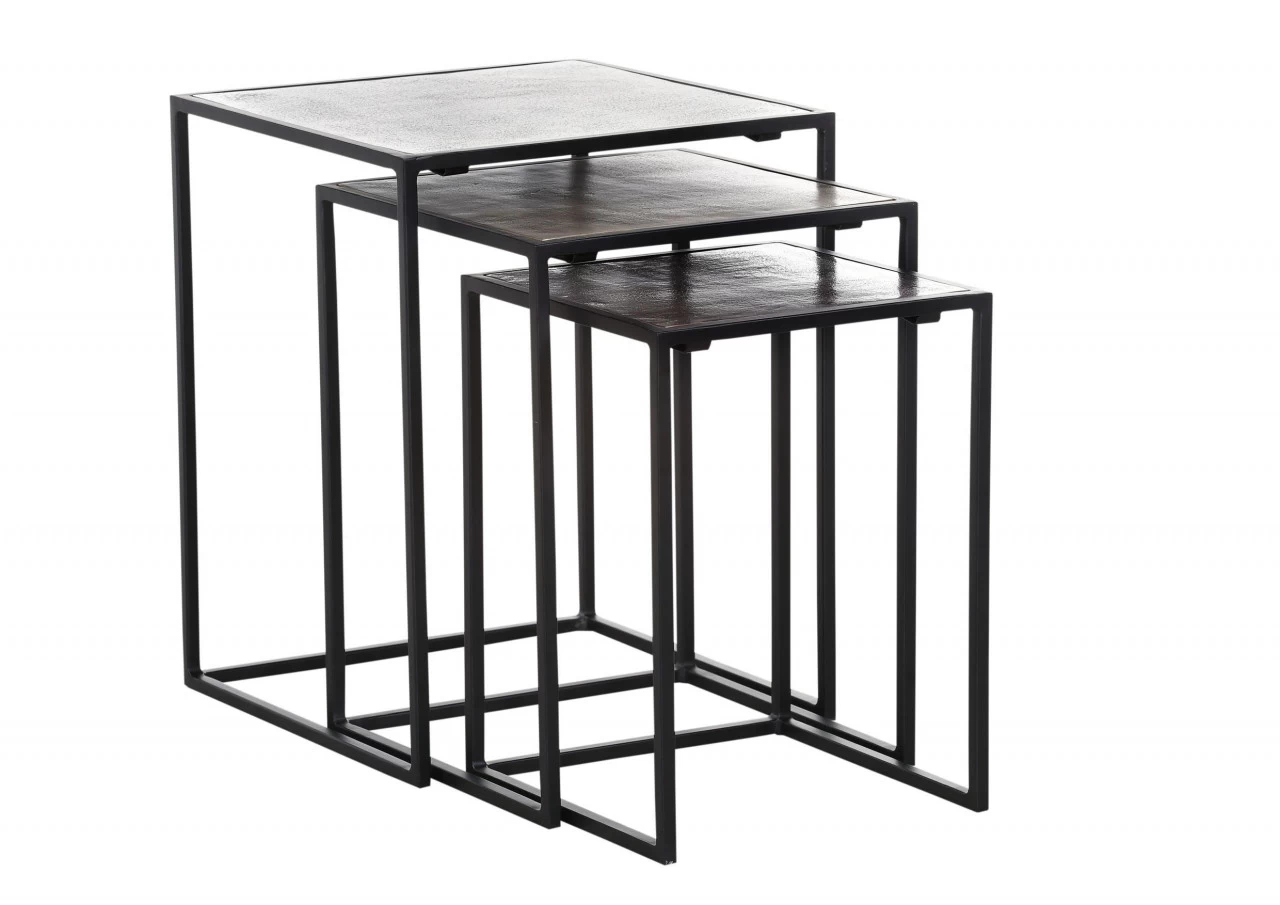 Bereichern Sie Ihren Wohnraum mit dem Beistelltisch Coffee aus dem Hause GUTMANN FACTORY. Dieser Tisch besteht aus Metall und ist in Schwarz gehalten. Dabei setzt sich die Tischplatte auf stilvolle Weise vom Gestell ab und sorgt für einen optischen Akzent. Dieser Tisch ist als praktisches 3er-Set erhältlich und bietet somit reichlich Möglichkeiten zur Dekoration oder zum Abstellen von Gegenständen.