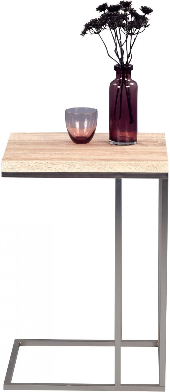 Dieser Beistelltisch überzeugt auf ganzer Linie. Der braune Beistelltisch kann auch optisch durch sein modernes Design begeistern. Dank seinem stilvollen Erscheinungsbild komplettiert das Modell RENE Ihr Einrichtungskonzept. Unterschiedlichste Räumlichkeiten können mit dem Tischchen geschmackvoll ausgestattet werden. Das Beistellmöbel eignet sich mit der hübschen Formgebung seiner Platte und der Materialauswahl hervorragend für Ihre Einrichtung. Es weist ein Breitenmaß von 38 Zentimetern und ein Tiefenmaß von insgesamt 43 Zentimetern auf. Mit diesem Beistelltisch können Sie Ihre vier Wände verschönern.