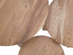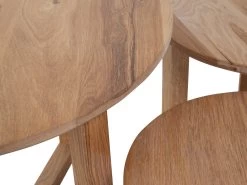 Das 3-teilige Couchtisch-Set Faye ist eine nützliche Ergänzung im Wohnbereich. Aus hellem Massivholz gefertigt, besitzen alle drei Tische ein ganz besonderes Gestell und dazu eine runde Tischplatte. Durch Form und Farbe entsteht ein sehr schöner Landhausstil, der aber auch in modernen Einrichtungen wunderbar zur Geltung kommt. Ob einzeln oder getrennt aufgestellt – auf den drei verschieden großen Couchtischen können Sie Getränke, Snacks, Zeitungen etc. schnell ablegen und auch für kleinere Dekorationsgegenstände ist hier Platz.