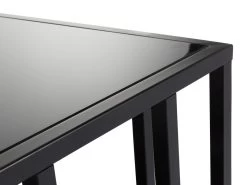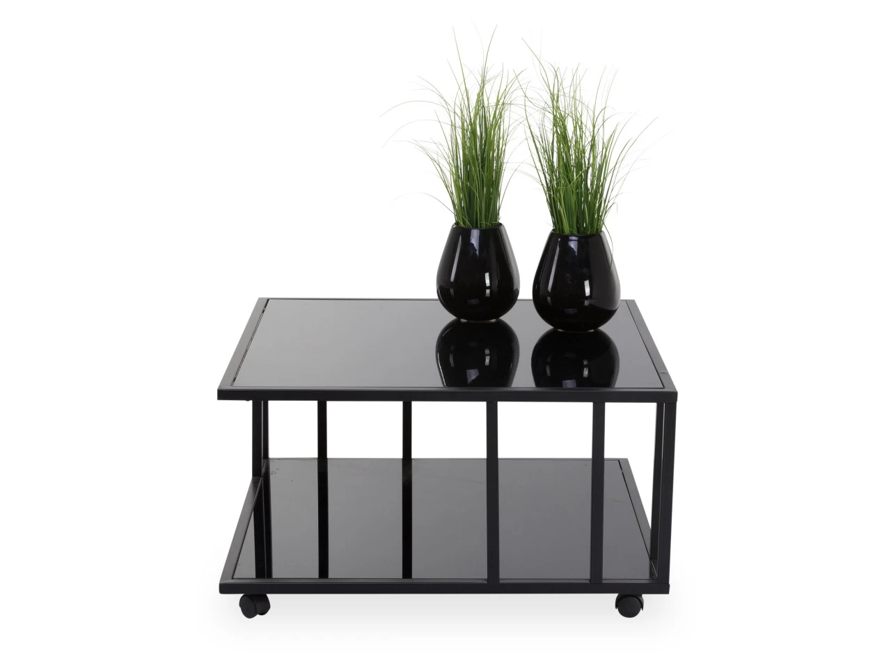 Der Couchtisch ELINA ist der ideale Begleiter für Ihren Wohnbereich. Das moderne Design wird Ihr Zuhause perfekt ergänzen. Die Deck- und Ablageplatte ist aus schwarzem Sicherheitsglas gefertigt und wird von einem schwarz lackierten Metallgestell gehalten. Zusätzlich ist der Tisch mit Rollen ausgestattet und lässt sich daher bequem im Raum positionieren.