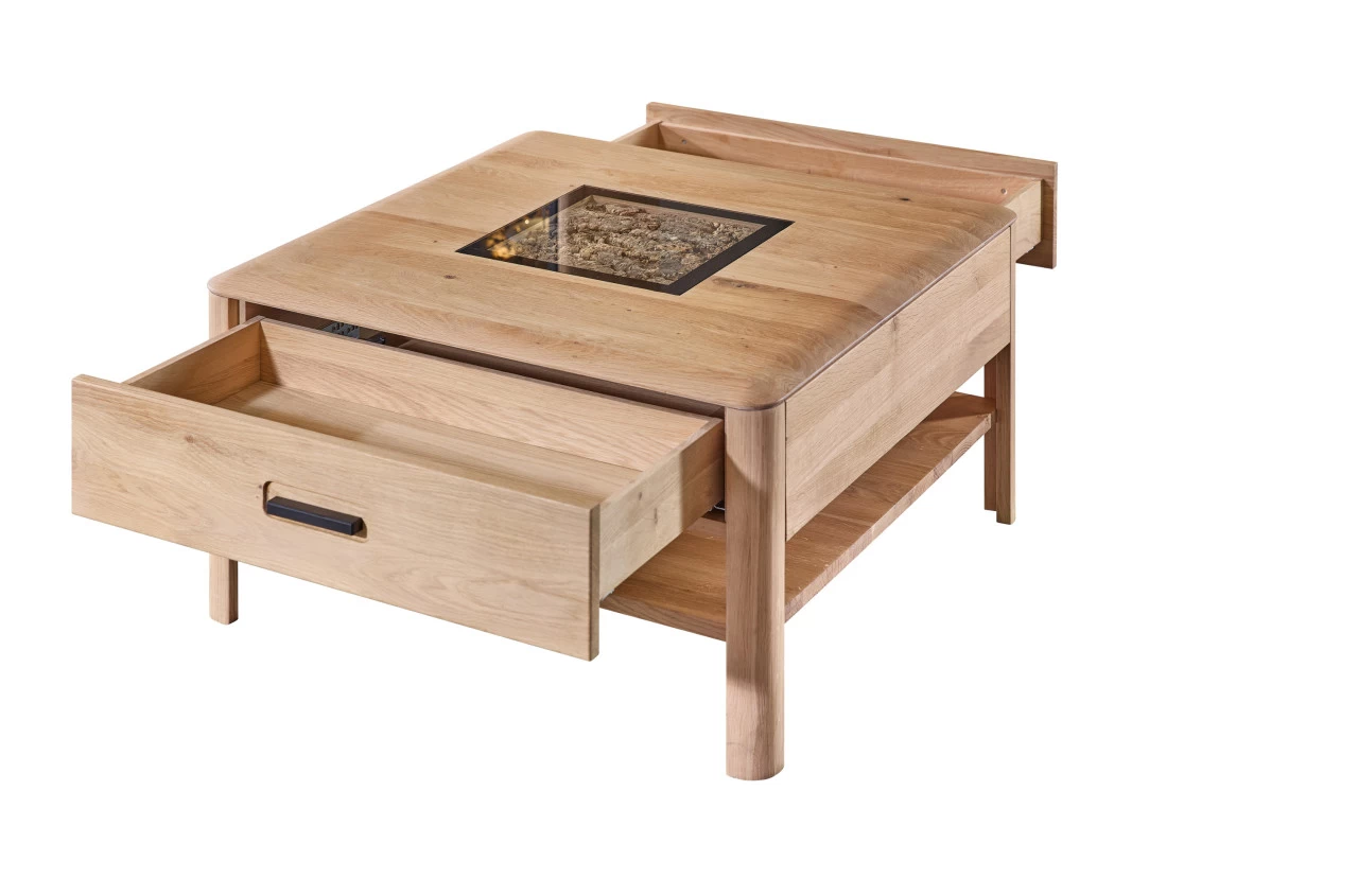 · Platte: Wildeiche massiv, durchgehende Lamelle mit einer Echt-Kork-Einlage mit Metallrahmen schwarz matt