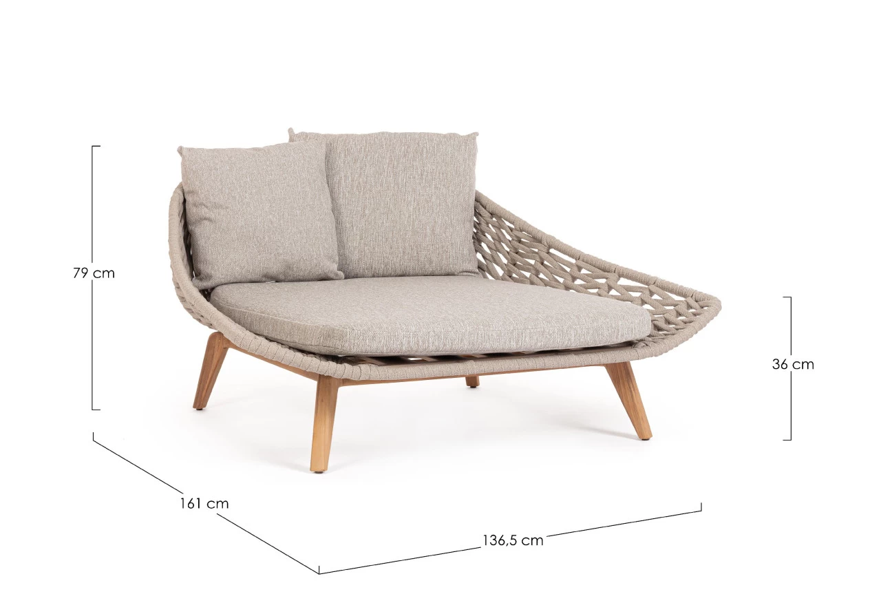 · Hochwertiges Daybed Tamires mit Aluminiumgestell und Pulverbeschichtung. Die FĂŒĂe sind aus Teakholz ( zertifiziert ) Das wunderschöne Geflecht wurde aus Polypropylen gefertigtund ist wetterbestĂ€ndig. Alle Kissen sind abziehbar. Leichte Montage nötig.