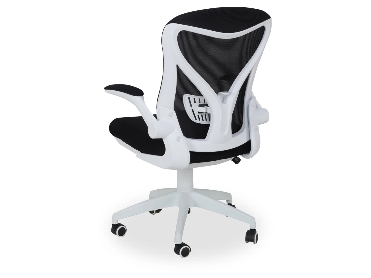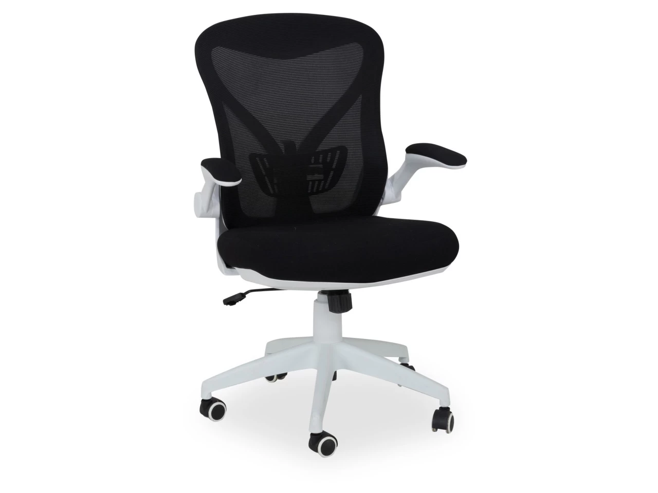 Tauchen Sie ein in die Welt des komfortablen Arbeitens mit dem stilvollen Drehstuhl MARVY. Seine schwarze Sitzfläche aus Stoffbezug und der Rückenbezug aus einem Netzstoff bieten nicht nur ein modernes Design, sondern auch einen angenehmen Komfort während Ihrer Arbeitstage. Er ist vielseitig einsetzbar und lässt sich mühelos mit verschiedensten weiteren Möbeln kombinieren. Die verstellbaren und gepolsterten Armlehnen ermöglichen Ihnen Flexibilität und zugleich Unterstützung für Ihre Arme. Der Stuhl ist mit einem praktischen Butterfly-Mechanismus ausgestattet für eine optimale Anpassung an Ihre eigene Sitzposition. Das elegante weiße Drehkreuz verleiht Ihrem Arbeitsbereich eine stilvolle und moderne Note. Mit den Maßen BHT 65x108x63 cm und der Belastbarkeit von bis zu 120 kg ist dieser Drehstuhl perfekt dimensioniert und robust. Entdecken Sie mit dem Drehstuhl MARVY das ideale Möbelstück für Ihre Homeoffice Ausstattung.