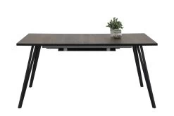Erschaffen Sie mit diesem gleichermaßen praktischen wie ansprechenden Tisch eine gemütliche Atmosphäre für schöne Stunden und gemeinsame Mahlzeiten im Familien- und Freundeskreis. Der braune Tisch macht in seinem modernen Design eine ideale Figur. Er verbreitet dank seiner Materialauswahl eine gemütliche Atmosphäre und wertet Ihre Einrichtung mit seinem ansprechenden Erscheinungsbild auf und wirkt äußerst stilvoll. Der Tisch erweist sich nicht nur als optische sondern auch als praktische Ergänzung für Ihr Interieur. Er besitzt ein Breitenmaß von 160 Zentimetern, eine Höhe von 76 Zentimetern und eine Tiefe von insgesamt 90 Zentimetern. Dieser Tisch ist die perfekte Kombination aus toller Ästhetik sowie Funktionalität.