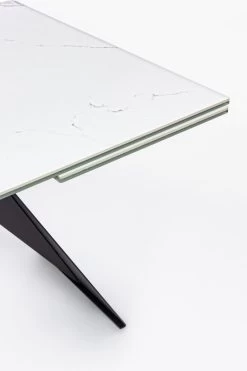 · Esstisch mit Struktur und Beinen aus pulverlackiertem Stahl. Tischplatte Keramik (5mm) und Glas (8 mm). Einfache Montage.
