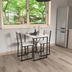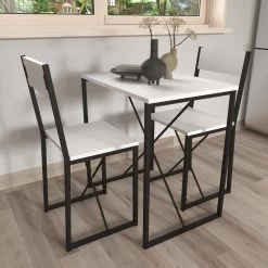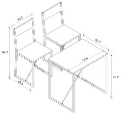· Zwei Stühle können platzsparend unter den Tisch geschoben werden