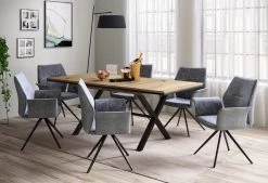 Der Esstisch KARINA hat in Ihrer Einrichtung noch gefehlt. Ihr persönliches Konzept wird dank des modernen Designs vervollständigt. Durch seine geschmackvolle Optik bereichert der braune Tisch nahezu jede Interieur. Aufgrund der gelungenen Form seiner Platte und des verwendeten Materials ist er ideal für Ihre Einrichtung geeignet. Durch das Möbelstück lassen sich verschiedenste Räume stilvoll vervollständigen. Das Modell KARINA hat eine Gesamtbreite von 160 cm, eine Höhe von 76 cm und eine Tiefe von 90 cm. Dieser Tisch schafft an jedem Platz einen stilvollen Ort, an dem man gerne Zeit verbringt.