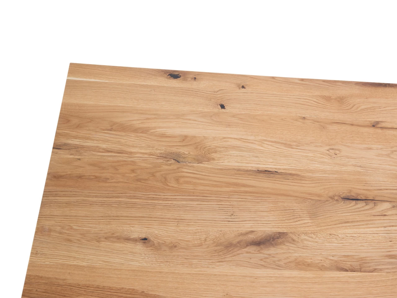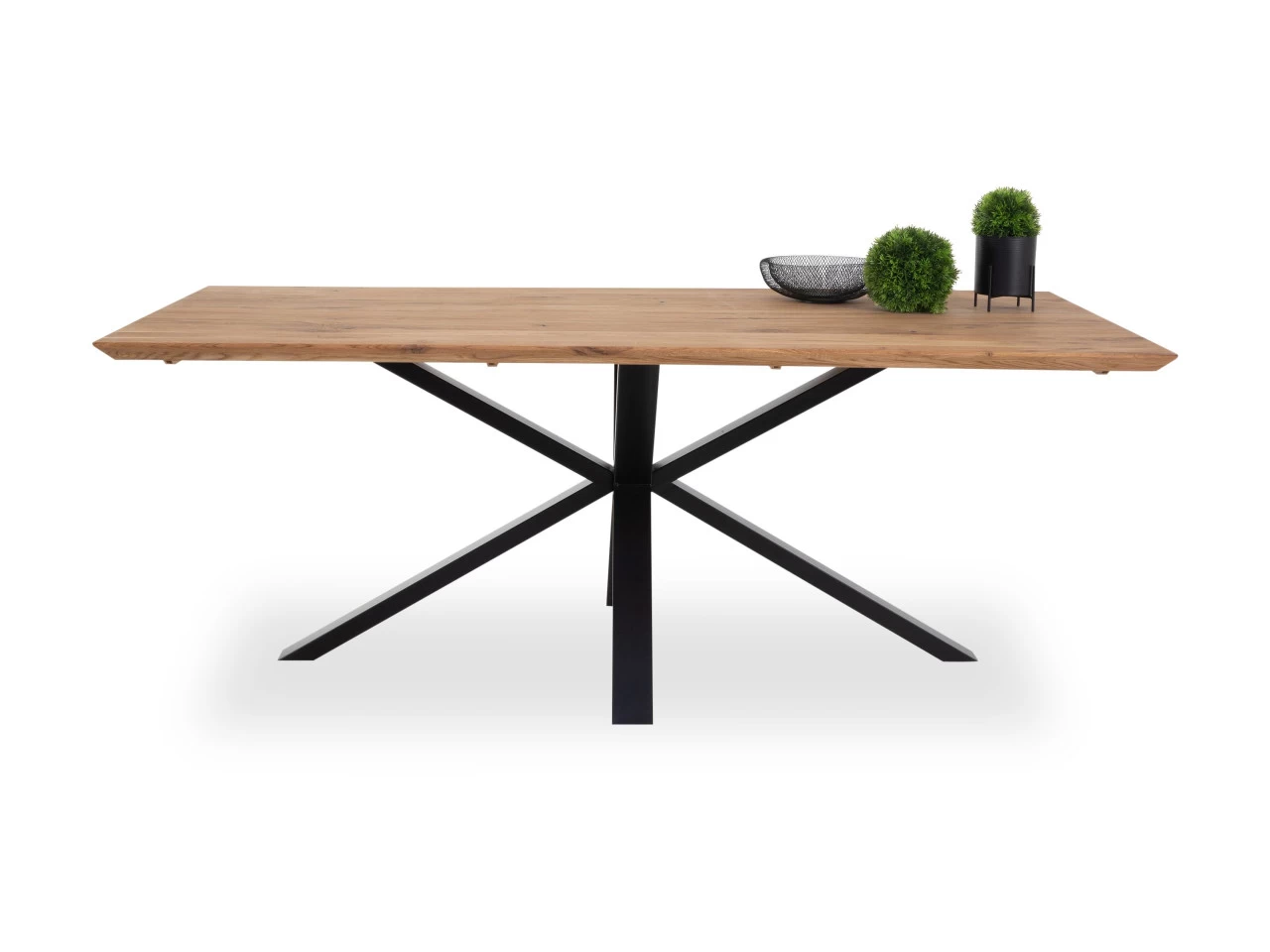 Der Esstisch SEPINO von LIVIN ist nicht nur ein funktionales Möbelstück, sondern auch ein Design-Statement. Die Tischplatte aus Eiche, geölt und mit einer Schweizer Kante, strahlt natürliche Schönheit aus. Das markante Spyder-Fußgestell in Schwarz verleiht dem Ganzen einen modernen Touch und sorgt gleichzeitig für Stabilität. Die geölte Oberfläche betont die Maserung des Eichenholzes und verleiht dem Tisch eine warme Ausstrahlung. Genießen Sie stilvolle Mahlzeiten und gesellige Stunden an diesem einladenden Esstisch.