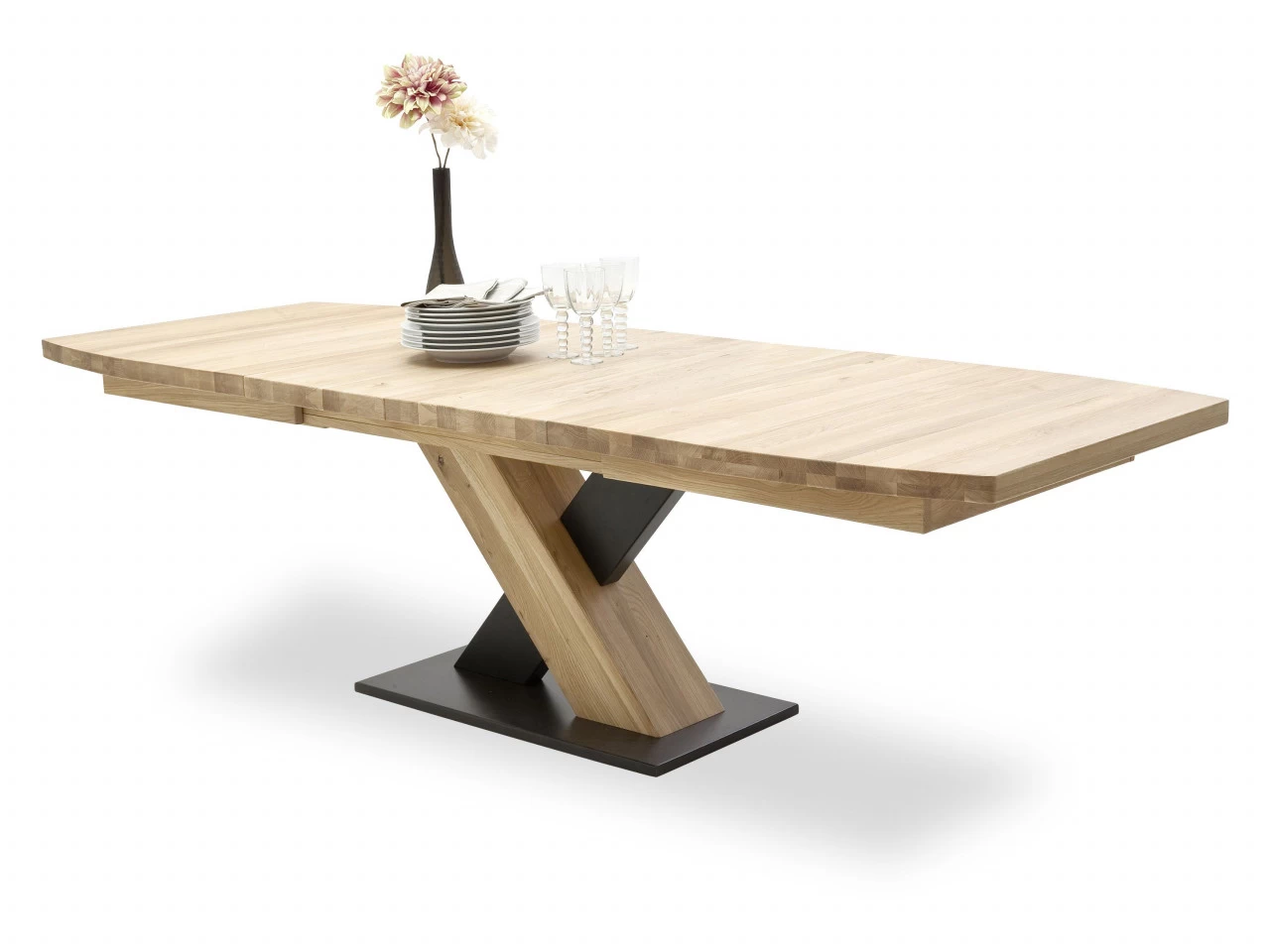 Modernes, rustikales Design und viel Platz – der Esstisch Mendoza wird Sie begeistern! Insgesamt besteht der Tisch aus geölter Eiche Bianco massiv und besitzt schöne, x-förmige Füße, die auf einer schwarzen Bodenplatte befestigt sind. Somit präsentiert er einen natürlichen, aber auch modernen Stil, der vielseitig kombinierbar ist. Durch seine geradlinige, aber auch leicht abgerundete Bootsform und die speziellen Tischbeine wird er in Ihrem Esszimmer zum Hingucker und bietet Ihnen eine große Tischplatte. An dem 180 cm großen Tisch, der sogar auf 270 cm ausziehbar ist, können Sie mit der Familie und Freunden die freie Zeit mit leckeren Mahlzeiten genießen!