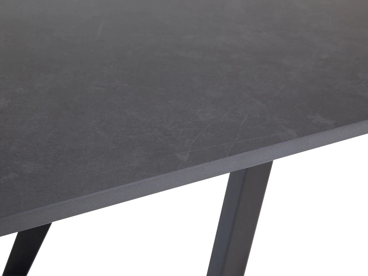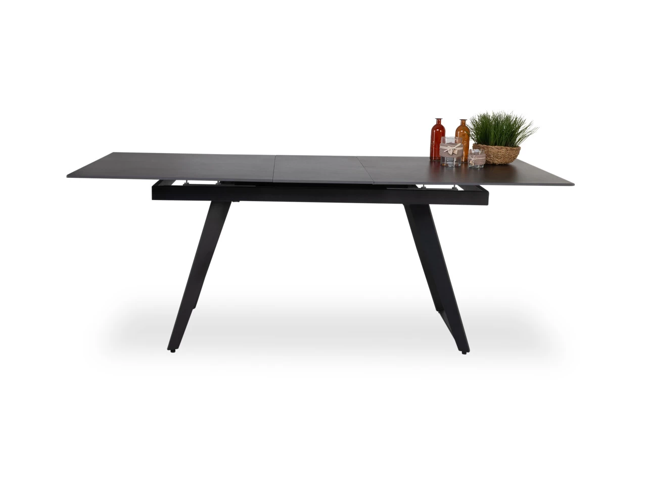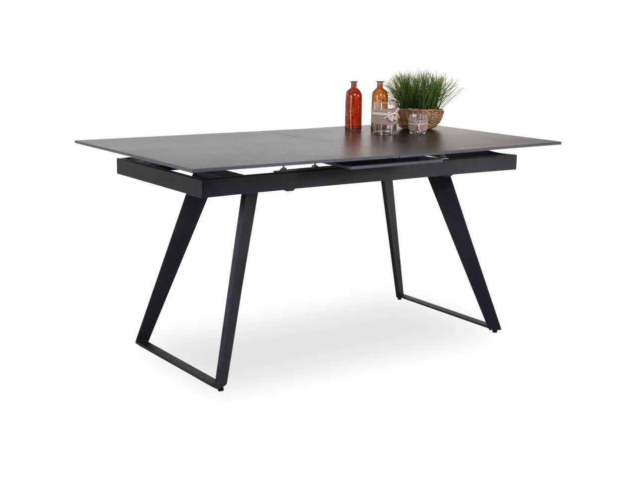 Mit dem Esstisch SANITZ erleben Sie zeitlose Eleganz und praktische Raffinesse. Die Tischplatte aus anthrazitfarbener Keramik verleiht Ihrem Essbereich einen Hauch von Modernität und Beständigkeit. Das Gestell aus schwarz mattem Metall ergänzt das Design perfekt und sorgt für Stabilität. Mit seiner Liftfunktion bietet der Esstisch nicht nur eine elegante Ästhetik, sondern auch die Möglichkeit, den Tisch an Ihre Bedürfnisse anzupassen. Genießen Sie gesellige Mahlzeiten und Zusammenkünfte, denn dieser Tisch kann mühelos auf eine Länge von etwa 200 cm ausgezogen werden. Mit dem Esstisch SANITZ holen Sie sich nicht nur ein Möbelstück, sondern ein Meisterwerk der Ästhetik in Ihr Zuhause.
