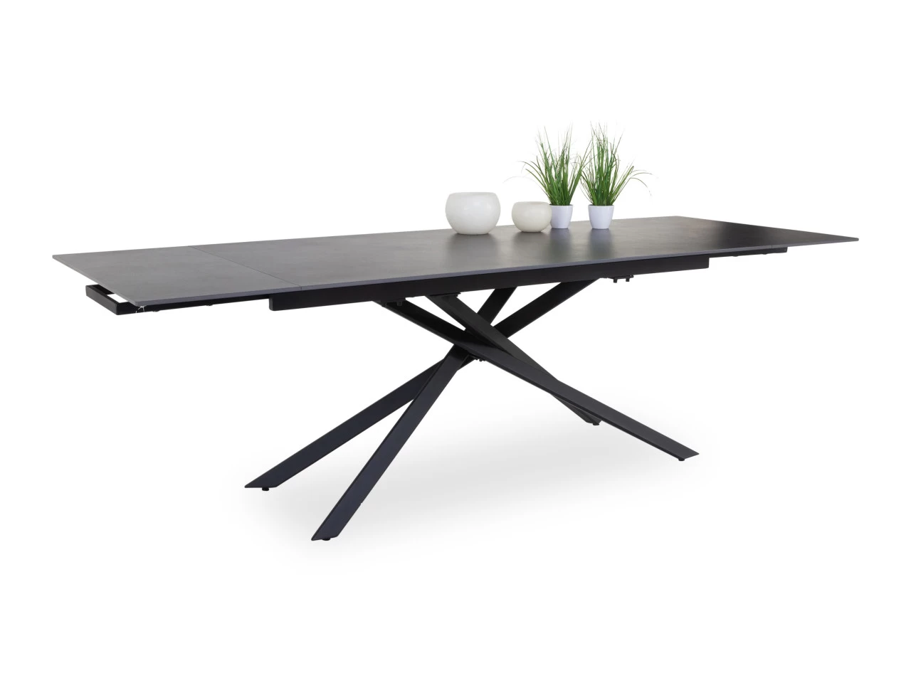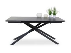 Der Esstisch TARBEK ist durch sein modernes Design ein elegantes Statement in jedem Esszimmer. Die anthrazitfarbene Keramikplatte verleiht dem Ganzen eine elegante Ausstrahlung, während das schwarz matte Metallgestell für Stabilität und Modernität sorgt. Mit seiner seitlichen Ausziehfunktion auf beiden Seiten bietet er ausreichend Platz für gesellige Mahlzeiten, egal ob im kleinen Kreis oder mit Gästen. Der Tisch ist auf ca. 240 cm ausziehbar. Er lässt sich harmonisch in nahezu jedes Einrichtungskonzept integrieren.