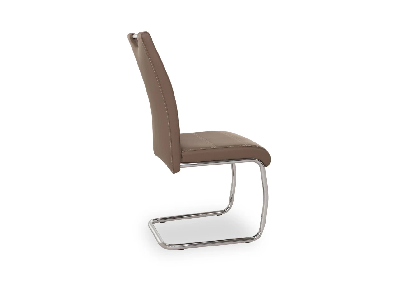 Schwingstuhl Henry bietet sowohl bequemen Sitzkomfort als auch ein modernes, ansprechendes Design. Henry präsentiert sich im schicken Lederlook in Latte, der durch die weißen Doppelkontrastnähte einen ganz besonderen Charme verliehen bekommt. Das verchromte Rundrohr Metallgestell unterstützt zudem den modernen Charakter des Schwingstuhls.