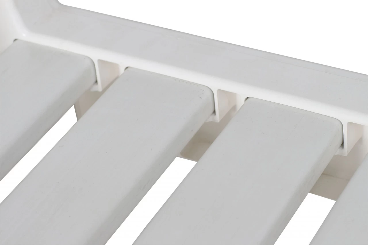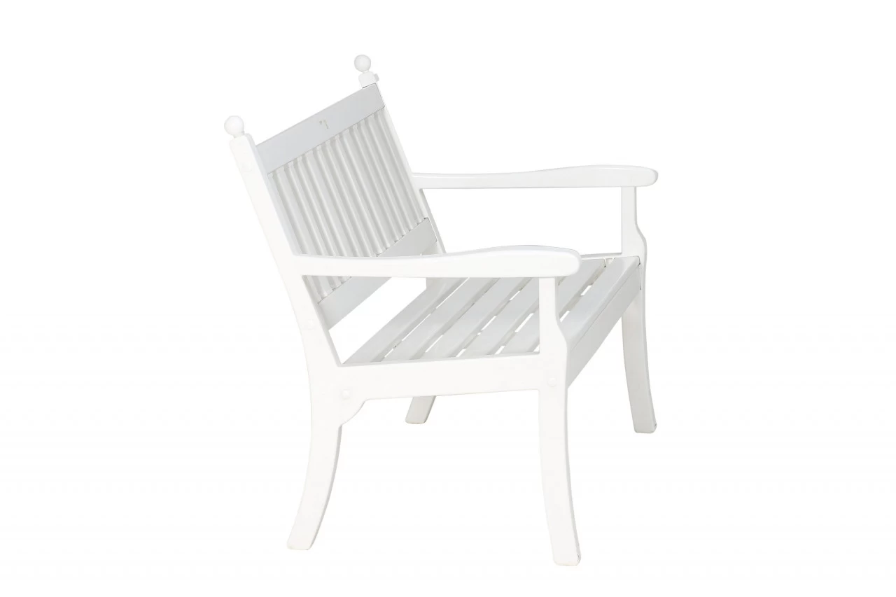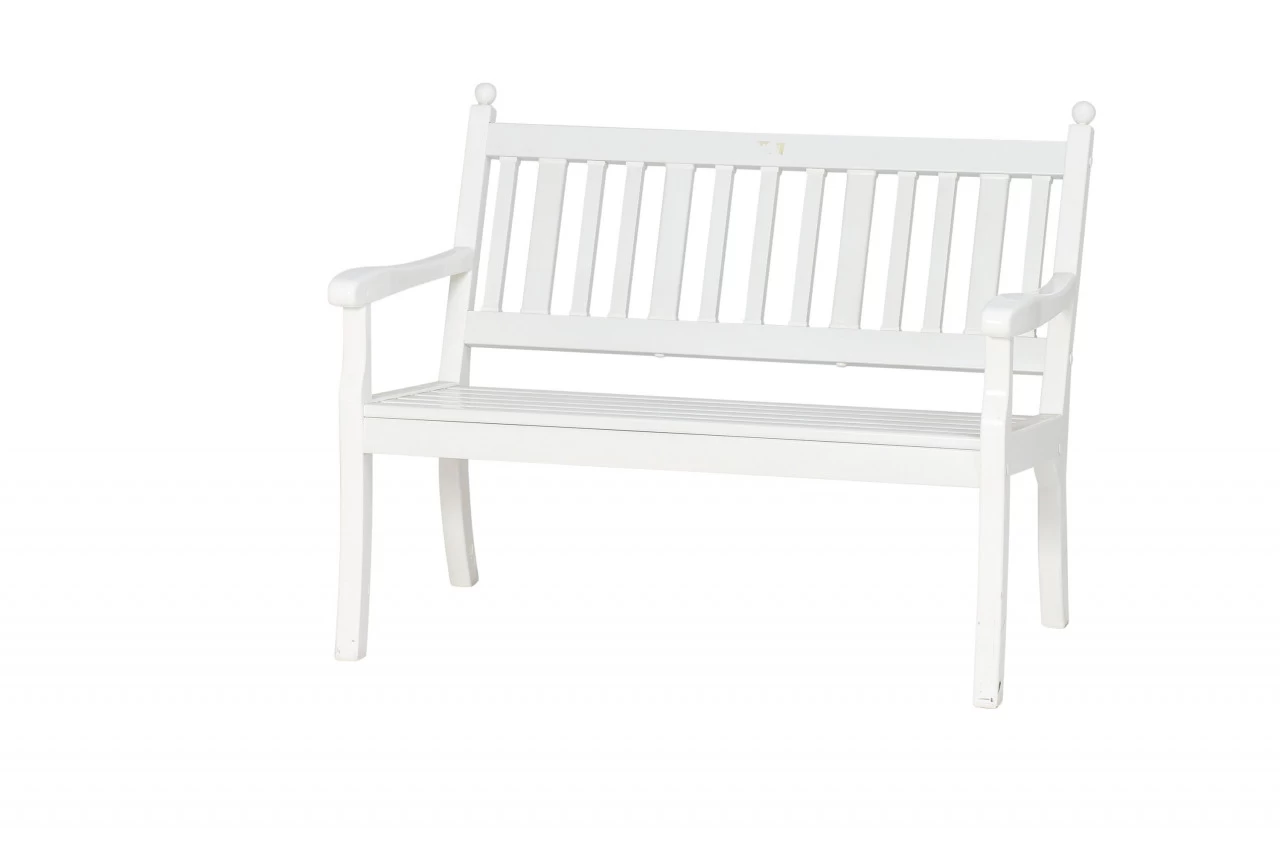 · Die weiße 2-sitzige Gartenbank Hohenzollern mit 115 cm Breite schafft einen stilvollen Platz zum ausruhen. Die Seitenteile sind aus hochwertigem Vollkunststoff hergestellt. Vier rostfreie Metall-Profilträger im Sitz- und Rückenteil sorgen zusätzlich für besonders hohe Stabilität und lange Lebensdauer.