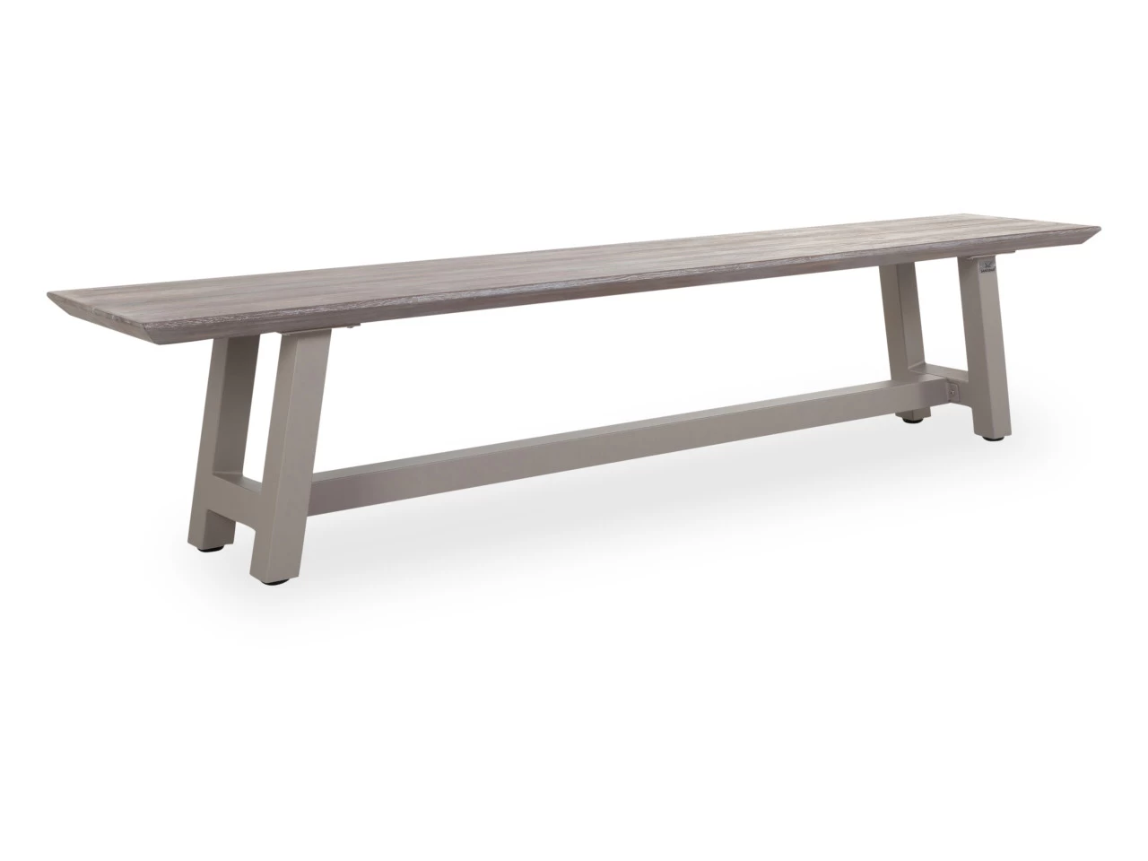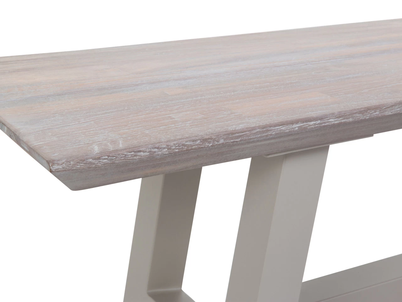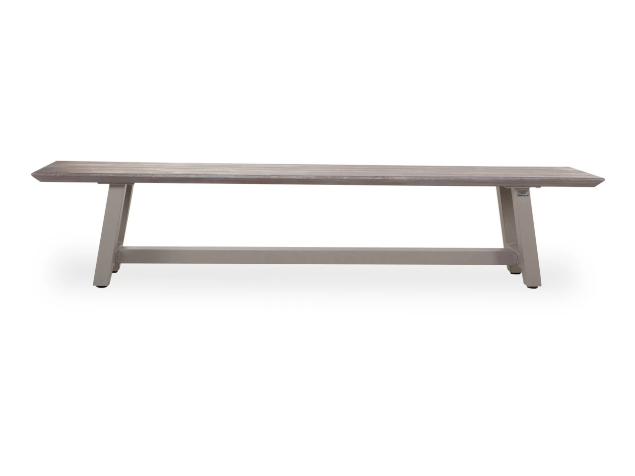 Erleben Sie entspannte Momente im Freien mit der Gartenbank SANSIBAR ALKERSUM. Die Sitzfläche aus recyceltem Teakholz verleiht Ihrem Außenbereich einen rustikalen Charme, während das rustikal gebürstete und in hellgrau gewaschene Finish für eine zeitlose Eleganz sorgt. Mit der markanten Schweizer Kante wird jedes Detail zum Blickfang. Das robuste Gestell aus sandfarben beschichtetem Aluminium garantiert Stabilität und Langlebigkeit, damit Sie die Natur und den Komfort in vollen Zügen genießen können. Die Gartenbank ALKERSUM von SANSIBAR lässt sich dank der stimmigen Farbgestaltung problemlos mit verschiedensten Möbelstücken im Garten kombinieren.