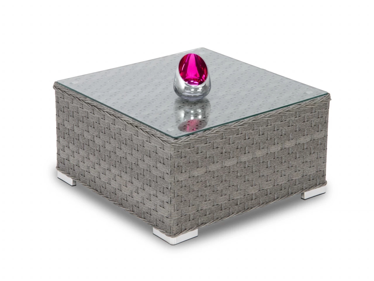 Modern und stilbewusst setzt dieser exklusive Couchtisch/Hocker Washington von Outdoor besondere Akzente in Ihren Wohnräumen. Ein robustes Aluminiumgestell sowie ein flaches, graues Geflecht-Design charakterisieren dieses schicke Möbelstück zu einem exklusiven Gegenstand in Ihrem Zuhause. Eine Klarglasplatte schützt das Geflecht darüber hinaus auf eine praktische Weise und verleiht dem Couchtisch/Hocker das besondere Etwas. Ganz mühelos kann die Glasplatte gleichfalls abgenommen und der Couchtisch somit zum Hocker umgewandelt werden.