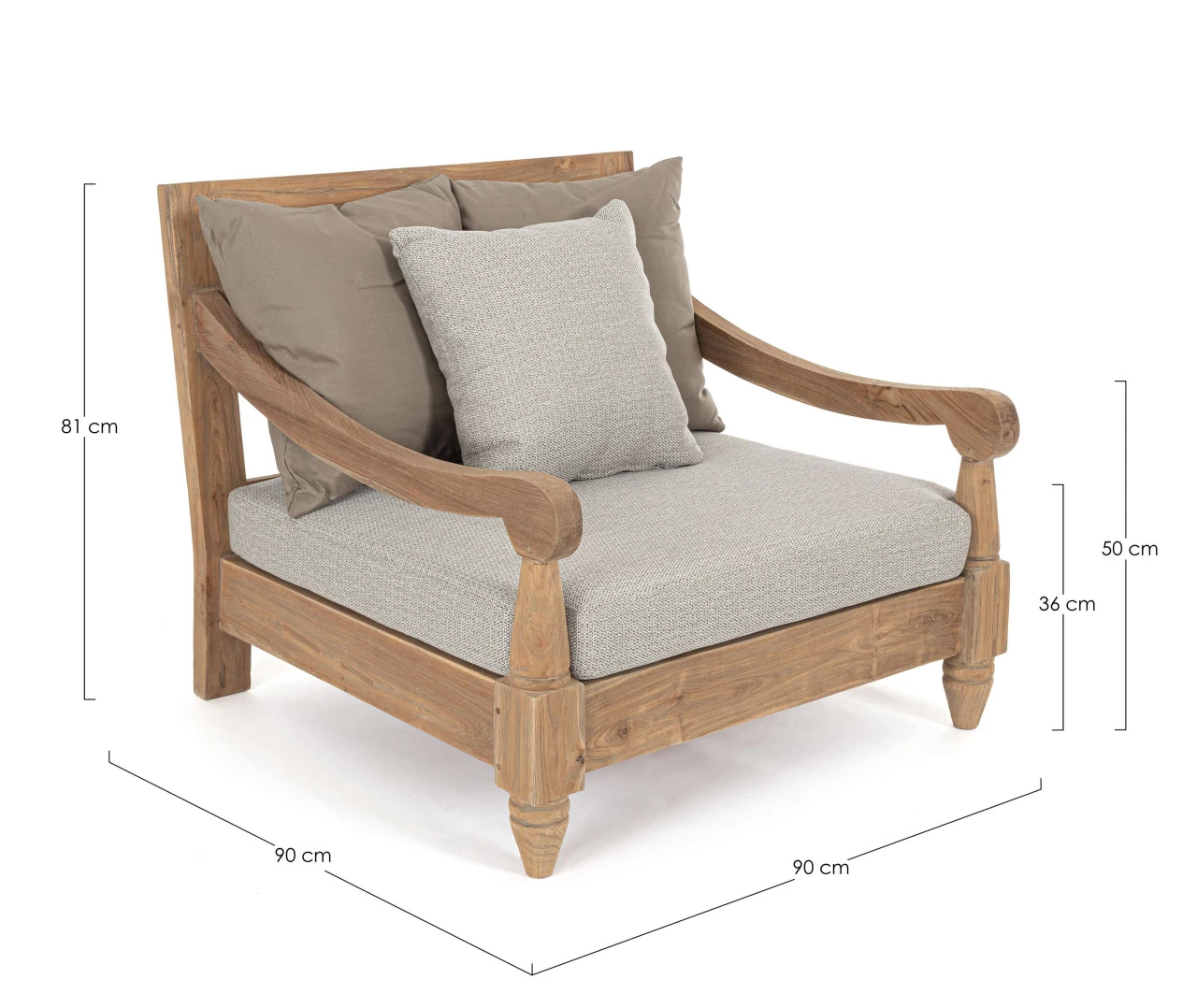 Mit diesem Gartensessel sind Sie für den Sommer bestens ausgestattet. Der Outdoor-Sessel begeistert durch seinen ästhetischen Look, der ihn zur optimalen Sitzgelegenheit für Ihre Outdoor-Einrichtung macht. Mit seiner unaufdringlichen Farbausführung fügt sich er perfekt in Ihr Exterieur ein und kann mit diversen Outdoor Möbeln kombiniert werden. Der Outdoor-Sessel aus Teak hat die Farbe Braun. Mit seinem modernen Design wird er auch in Sachen Stil höchsten Ansprüchen gerecht und überzeugt mit allerbestem Komfort. Die Kombination des verwendeten Materials und seiner stimmigen Formgebung mit bemerkenswerten Details machen aus dem Gartenmöbel die ideale Ergänzung für Ihren Außenbereich. Der Outdoor-Sessel weist eine Breite von 90 cm, eine Gesamthöhe von 81 cm und ein Tiefenmaß von 90 cm auf. In diesem Sessel können Sie sich zurücklehnen und den Sommer genießen.