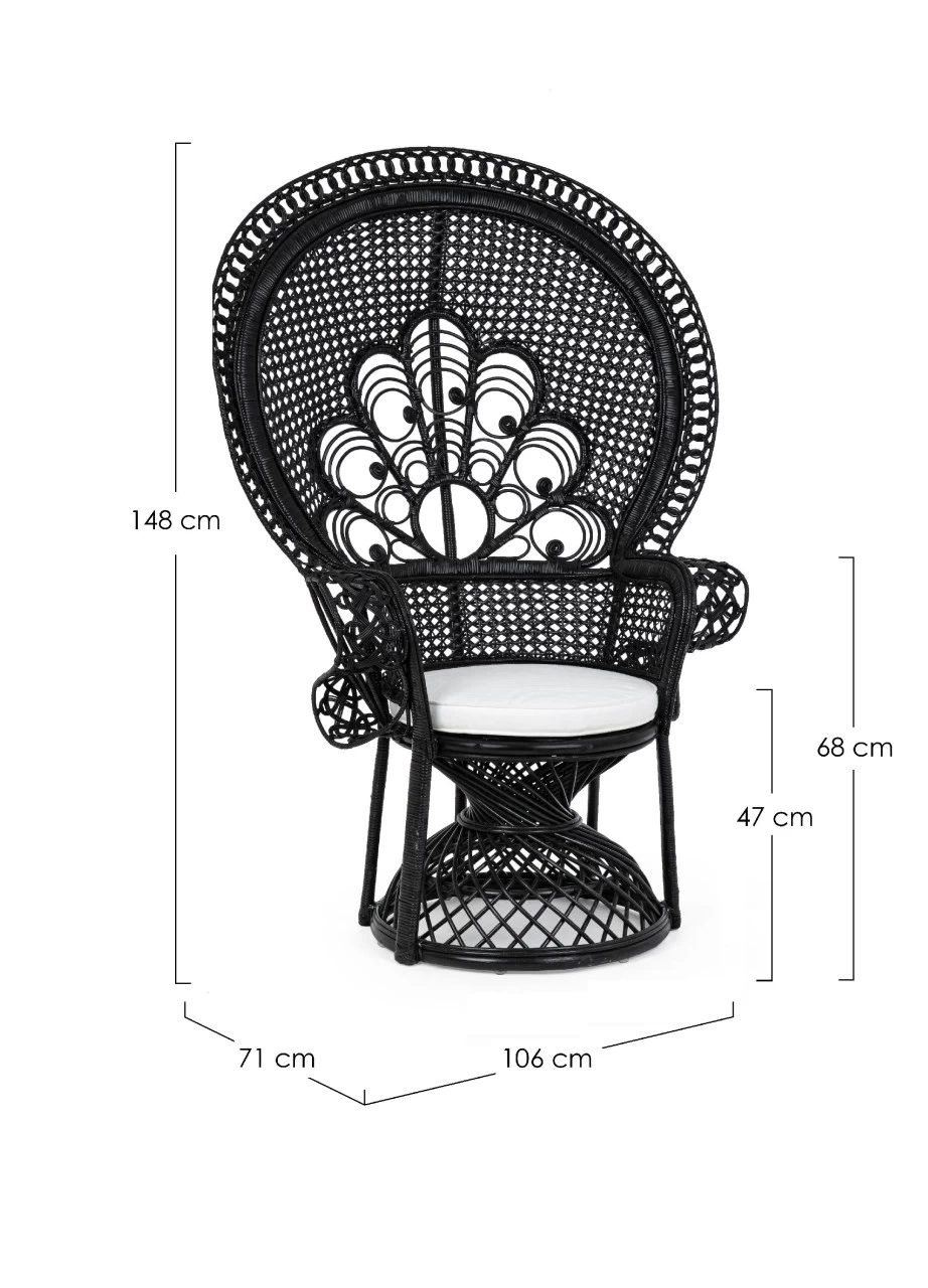 · Kunstvoller Natursessel aus Rattan mit feinem Korbgeflecht. Schutz aus Melaminlack in Schwarz. Die Kissen sind abziehbar. Artikel nicht der direkten Sonnen-und wetterlage aussetzen.