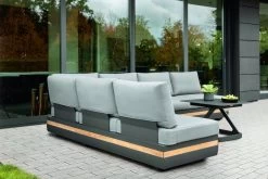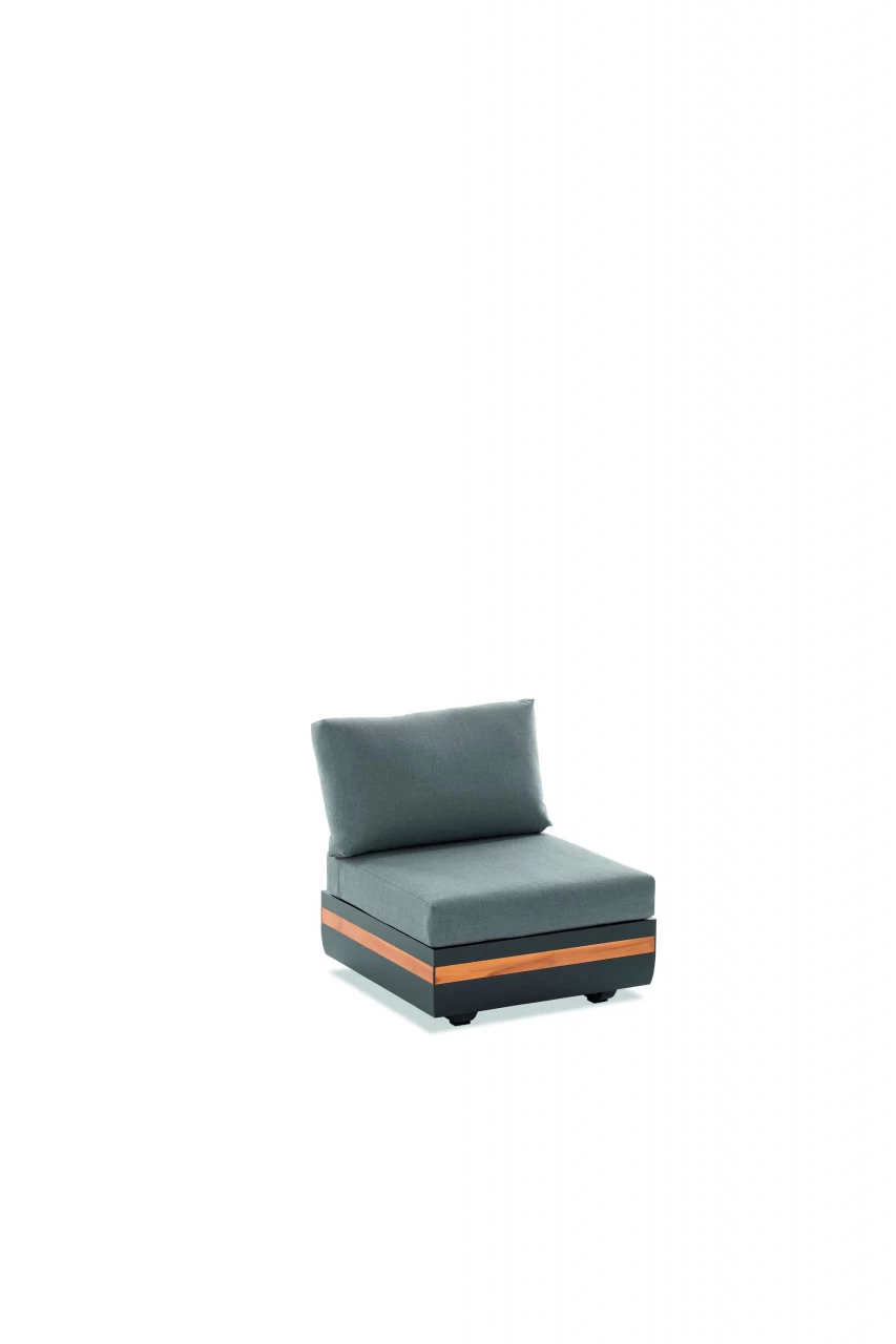 · Loungegruppe VOLANO Einzelsessel inkl. Sitz- und Rückenkissen, Bezug Canvas Heather anthrazit, Kufen und Gestell Aluminium pulverbeschichtet, Farbton anthrazit, mit Einlage in Teak natur, 75×75 / 80 cm