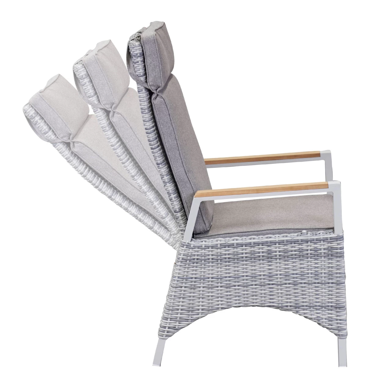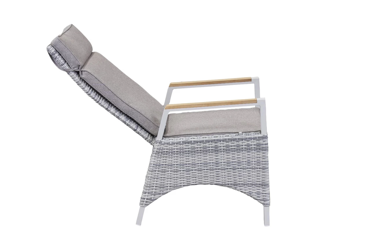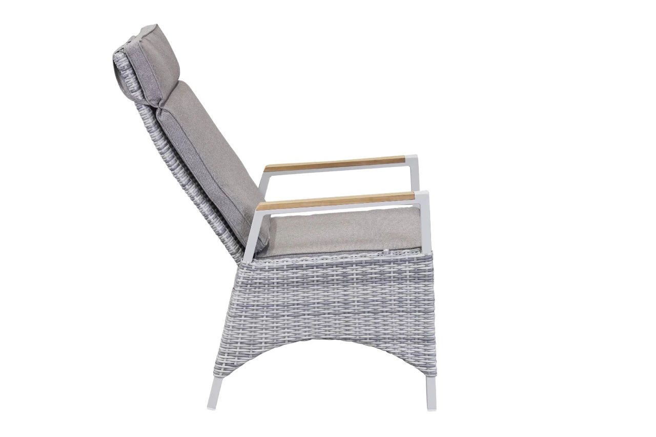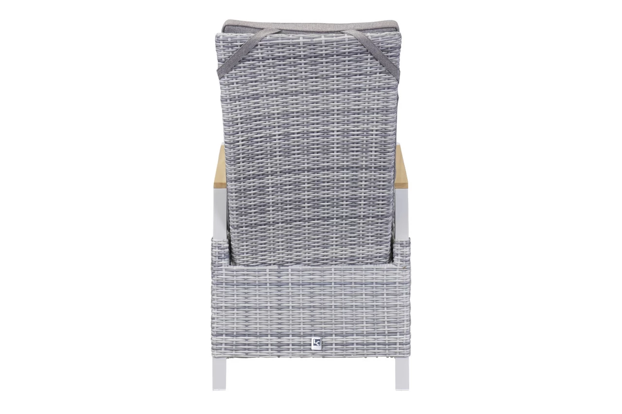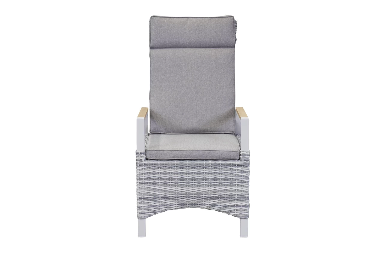 Dieser Gartenstuhl ist die ideale Sitzmöglichkeit für eine erholsame Zeit an der frischen Luft. Der Outdoor-Begleiter besticht mit der Qualität des verwendeten Poly-Rattans und macht in seinem modernen Design eine ausgezeichnete Figur. Kombinieren Sie ihn mit seiner unaufdringlichen Farbausführung zu unterschiedlichsten weiteren Möbelstücken und freuen Sie sich über hervorragende Ergebnisse. Kreieren Sie mit dem Stuhl ein einladendes Flair und bringen Sie ästhetisches Design in Ihre Außeneinrichtung. Der Stuhl in Weiß und Grau glänzt nicht nur durch seine optischen Eigenschaften, sondern auch mit seiner Funktionalität und rundet so Ihr Exterieur optimal ab. Er weist eine Breite von insgesamt 57 cm, eine Höhe von 110 cm und eine Tiefe von 68 cm auf. Mit diesem Outdoor-Begleiter werden Sie große Freude haben.