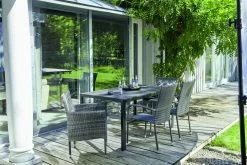 Auf diesem Gartenstuhl ist gemütliches Sitzen ein Leichtes. Mit seinem modernen Stil wird der Stuhl auch in Sachen Design höchsten Ansprüchen gerecht und begeistert durch allerbesten Komfort. Er passt mit dem bemerkenswerten Look optimal in Ihre Außeneinrichtung. Mit seiner unaufdringlichen Farbausführung fügt sich der schwarze Stuhl perfekt in Ihr Exterieur ein und kann mit den unterschiedlichsten Möbelstücken kombiniert werden. Das verwendete Material setzt einen stilvollen Akzent und sorgt zusätzlich für eine gemütliche Stimmung in Ihrem Außenbereich. Der Outdoor-Begleiter besitzt eine Breite von 59 cm, eine Höhe von insgesamt 87 cm und eine Tiefe von 62 cm. An diesem Stuhl werden Sie große Freude haben.