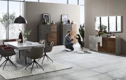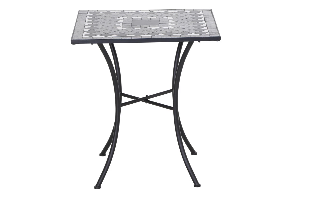 Tischplatte: Mosaikoptik dunkelgrau Gestell: Stahl pulberbeschichtet schwarz matt, *zerlegt*