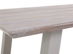 Der stilvolle Gartentisch ALKERSUM von SANSIBAR kombiniert rustikalen Charme mit moderner Eleganz. Die Tischplatte aus recyceltem Teakholz, rustikal gebürstet und in hellgrau gewaschen, verleiht jedem Außenbereich einen natürlichen Charakter. Die Schweizer Kante sorgt für ein besonderes Detail. Das beschichtete Aluminiumgestell in sandfarben bietet Stabilität, Wetterbeständigkeit und fügt sich harmonisch in das Gesamtdesign. Machen Sie den Gartentisch ALKERSUM zu einem eleganten Mittelpunkt für gesellige Zusammenkünfte in Ihrem Garten.