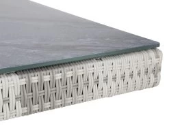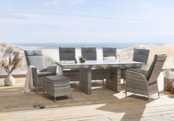 Entdecken Sie die Schönheit und die Funktionalität des Gartentisches WYK von SANSIBAR, der mit seinem modernen Design und hochwertigen Materialien Ihr Gartenparadies vervollständigt. Der Tisch bietet Ihnen ausreichend Stellfläche für Teller, Tassen und Gläser und ist somit ideal geeignet für gemeinsame Mahlzeiten im Grünen. Die großflächige Tischplatte aus Glas mit Keramikbeschichtung vereint Ästhetik mit Langlebigkeit. Sie wird von einem Aluminiumgestell mit Kunststoffgeflecht in doppelt halbrundem Design ergänzt. Mit den Abmessungen LBH 100x212x74 cm ist dieser Gartentisch perfekt dimensioniert. Der Tisch ist nicht nur ein Blickfang für Ihren Außenbereich, sondern harmoniert auch perfekt mit anderen Möbelstücken aus der WYK Kollektion. Genießen Sie entspannte Stunden im Freien in einem stilvollen Ambiente mit dem Gartentisch von SANSIBAR.