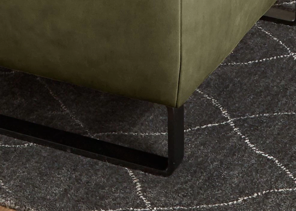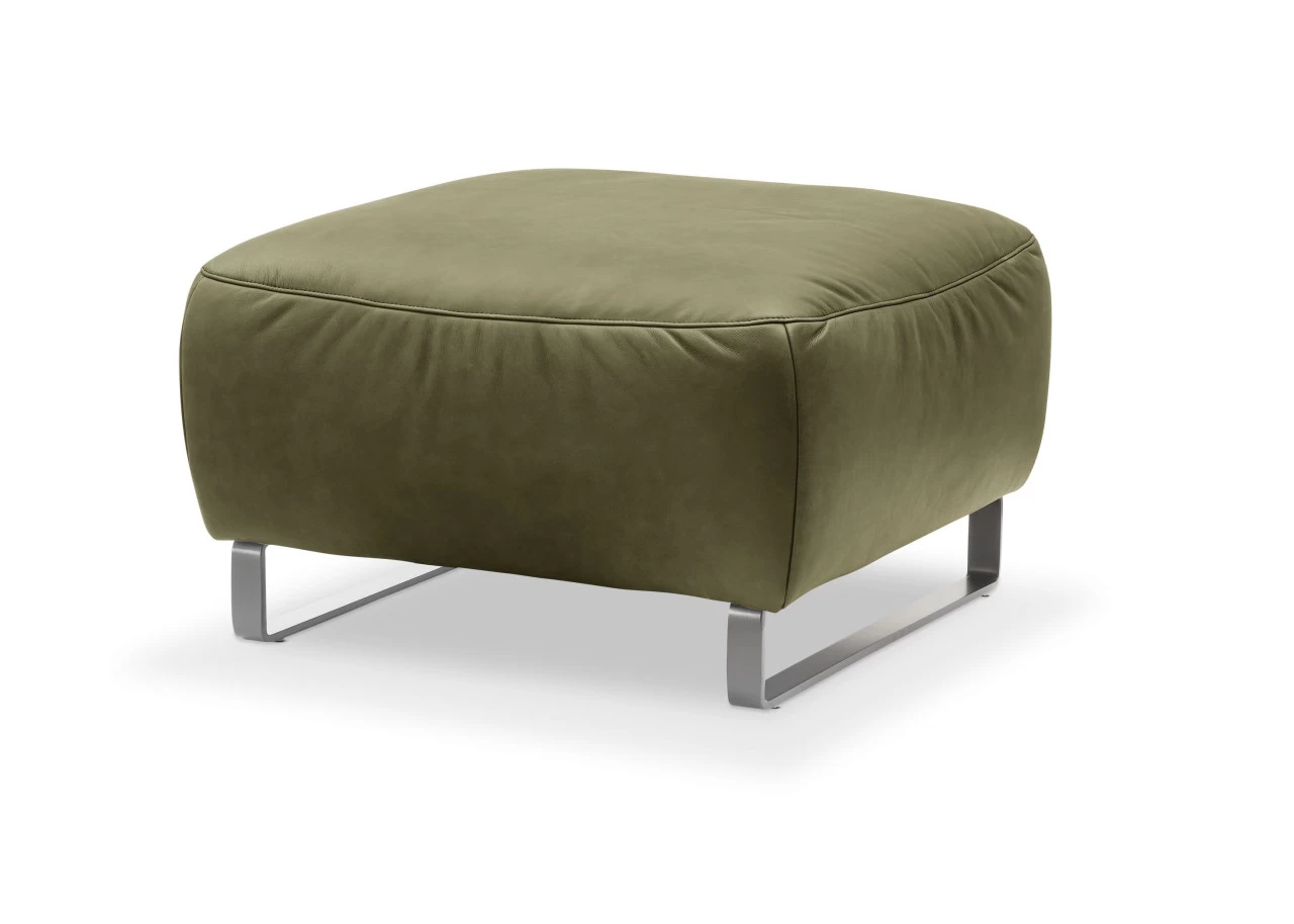 · Hocker im Bezug Leder Cesano green. Sitz soft mit PUR-Schaum und dauerelastischer Wellen-Unterfederung. Kufenfüße schwarz matt. Ohne Dekoration