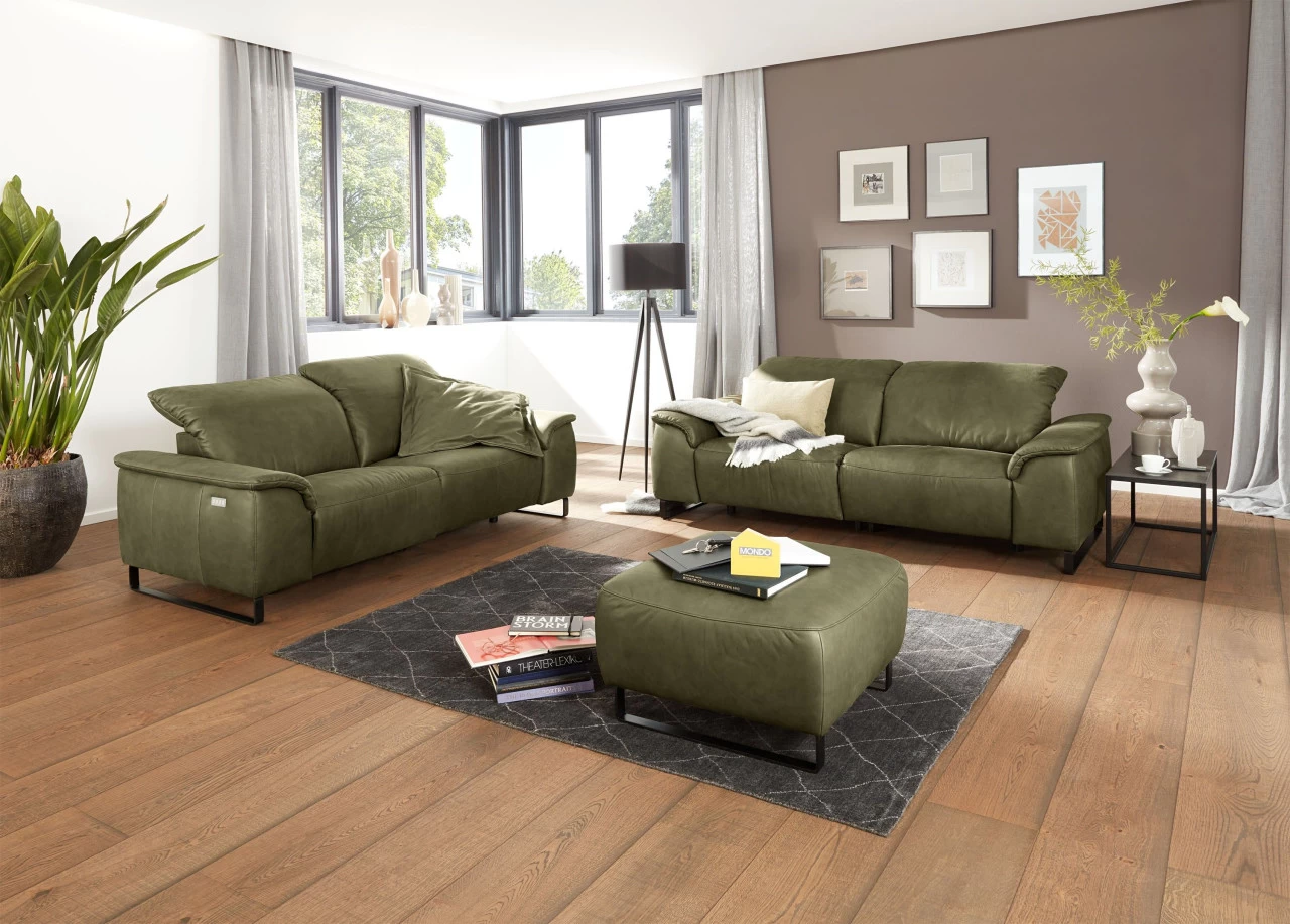 Der Hocker ATLA aus dem Hause MONDO überzeugt mit einem schicken Design und hochwertiger Verarbeitung. Die bequeme Sitzmöglichkeit ergänzt Ihr Wohnzimmer nahezu perfekt. Der Hocker ist mit einem grünen Echtlederbezug bezogen, passend dazu sind die Kufenüße in schwarz matt gehalten und schaffen somit den nötigen Kontrast. Der Sitz mit softem PUR-Schaum und dauerelastischen Wellenunterfederung ermöglicht ein hervorragendes Sitzgefühl.