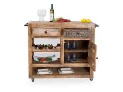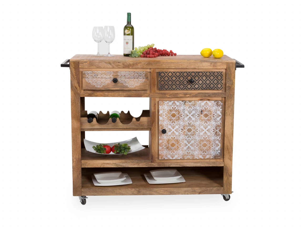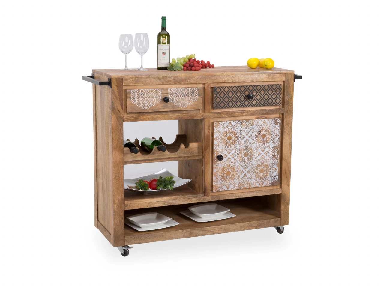 Der Küchenwagen Animate aus dem Hause vito ist der ideale Begleiter für Ihre Küche. Das schicke und gemütliche Design ist ein absoluter Hingucker, der Familie und Freunde staunen lassen wird. Der Korpus ist aus Mango sägerau natur gefertigt und kommt mit farbigen Türen und Schubladen, die das Design perfekt auflockern. Insgesamt kommt der Küchenwagen mit einer Tür, einem Weinregel und zwei Nischen.