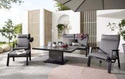 Genießen Sie entspannte Stunden im Freien mit dem stilvollen Lifttisch ASCELLA von MONDO. Die Keramikplatte in Grau macht den Tisch nicht nur zu einem Blickfang, sondern bietet auch ausreichend Platz für Getränke, Snacks und Dekorationen. Das schwarz matte Gestell aus Aluminium ist pflegeleicht und unterstreicht das moderne Design. Der Tisch ist höhenverstellbar und bietet Ihnen somit flexible Nutzungsmöglichkeiten. Entdecken Sie die moderne Gartenserie ASCELLA von MONDO, die perfekt für eine gemeinsame und erholsame Zeit im Grünen ist.