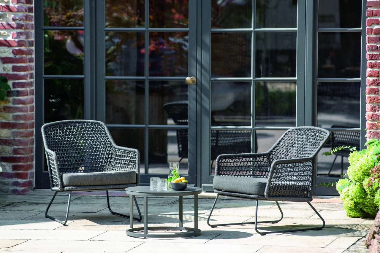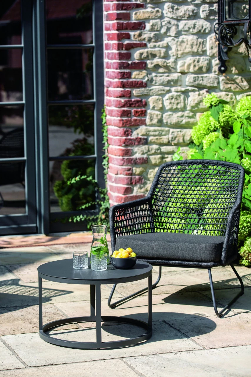 · Loungesessel KUBU Sitzschale Kordelflechtung in Rautenoptik grau inkl. Sitzkissen, Bezug Southend anthrazit, Gestell Aluminium pulverbeschichtet, Farbton anthrazit, 75×84 / 80 cm