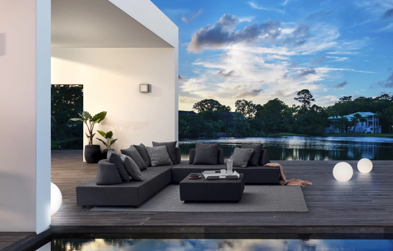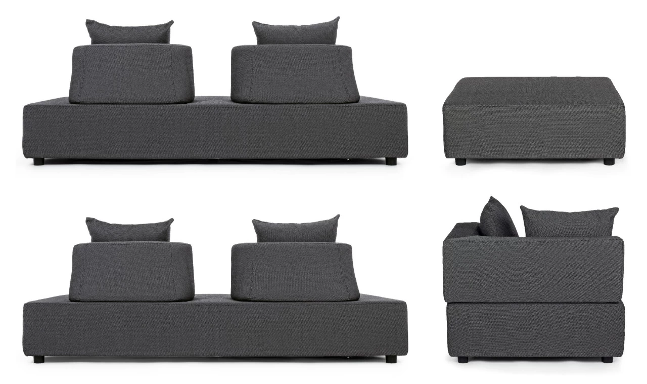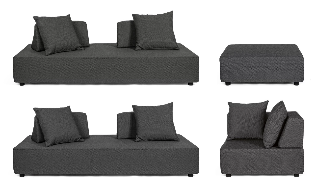 · Vierteiliges Loungeset mit Kissen. 1 Sofa und 1 Chaiselongue. Das Gestell ist aus Aluminium und wurde feuerverzinkt. Hochwertiger Olefin Bezug,Wasserabweisend ( Index 7 ) und mit einem PU Schaum in den Sitzflächen. Rückenkissen extra beschwert für angenehmen Sitzkomfort. Hocker immer dabei.