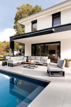 · Loungegruppe MALTA Loungetisch, Tischplatte Teak natur, Gestell Aluminium pulverbeschichtet, Farbton anthrazit, L 80 B 70 H 41 cm
