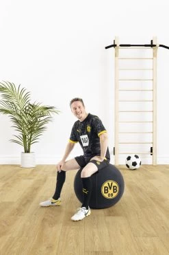 · Bequem in die neue Saison starten! Egal ob im Wohnzimmer oder im Büro ? mit dem Sitting Ball setzt du ein klares Statement und zeigst für welches Team dein Herz schlägt. Gleichzeitig bequem und gesund sitzen, ohne dabei Abstriche bei der Optik zu machen ? das klingt nach einer runden Sache! Der Sitting Ball verbessert die Sitzhaltung und sieht dabei auch noch stylisch aus. Der praktische Griff ist durch ein Klettband wandelbar und versteckt raffiniert die Reißverschluss-Öffnung des Ballbezugs. Official Merchandise-Artikel. max. Gesamtbelastung bis 100 kg Lieferumfang: 1 x Ballbezug 1 x PVC Innenball (ohne Luft) 2 x Verschlussventil 1 x Pumpenadapter 1 x Bedienungsanleitung