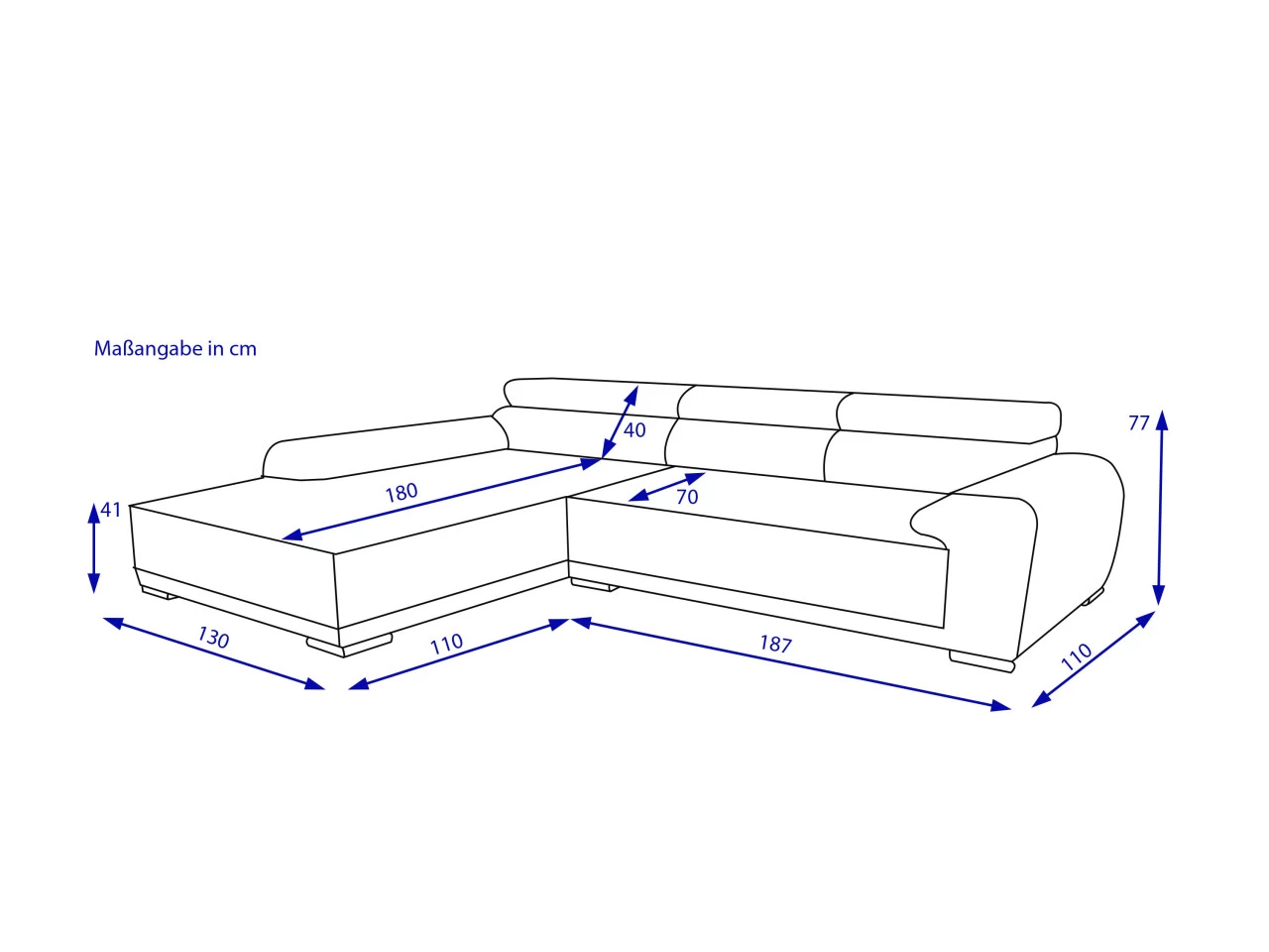 · Sitztiefe: ca. 71 bis 101cm