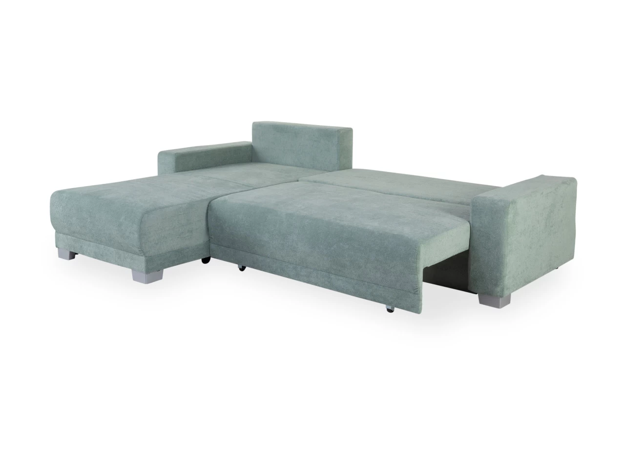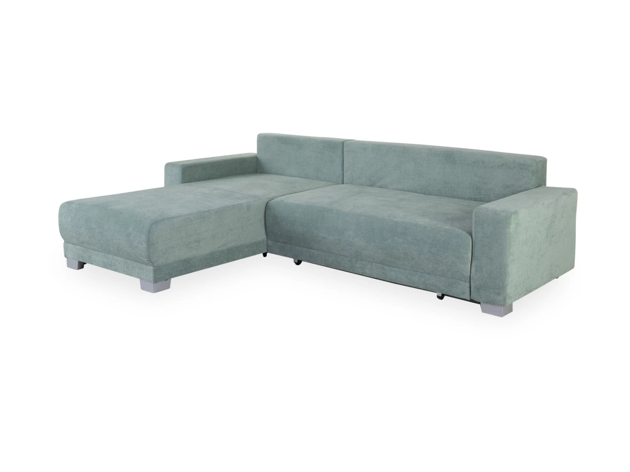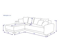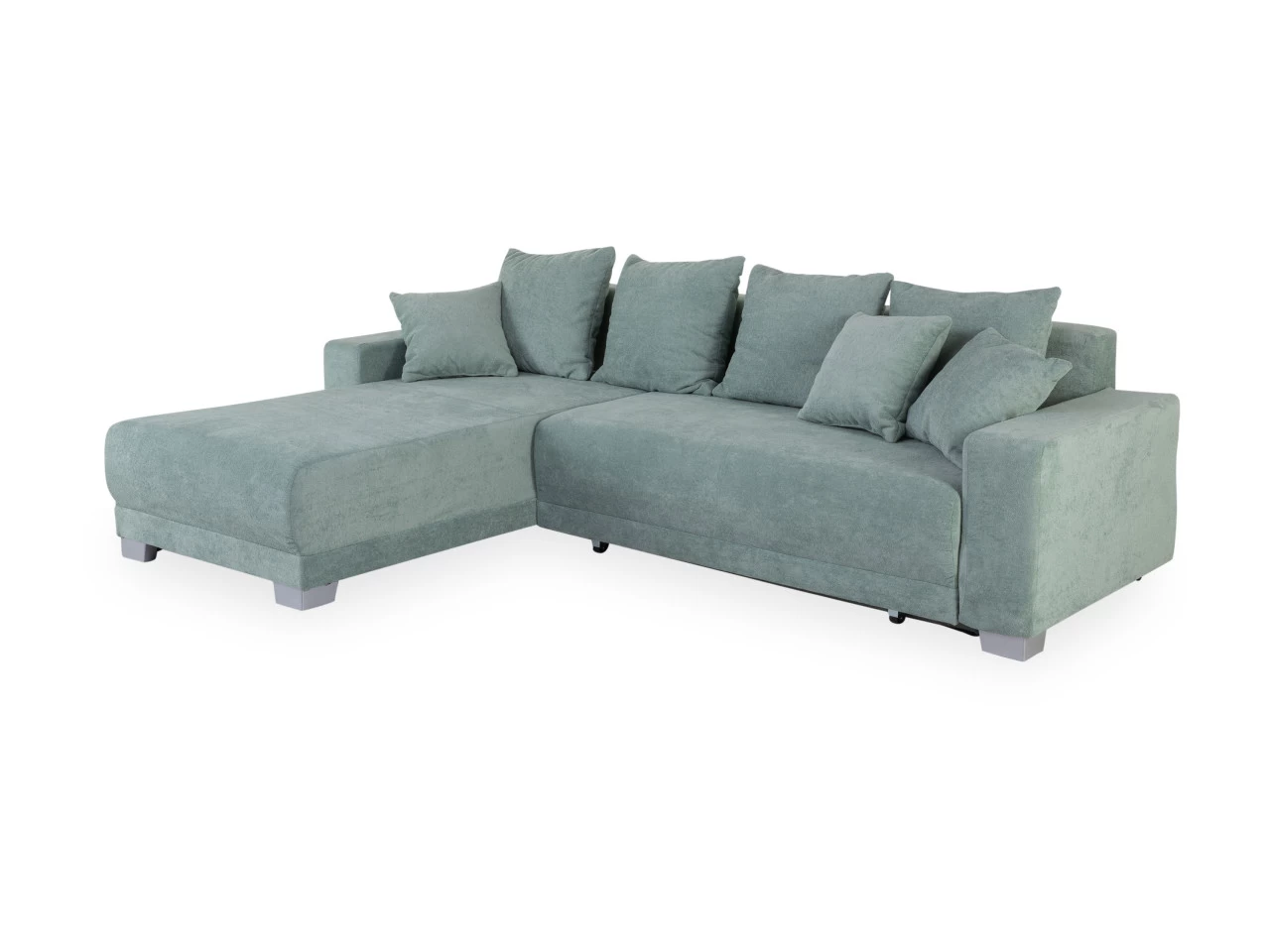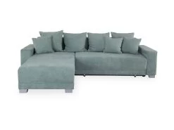 Die Polsterecke MARLEEN vereint modernes Design mit praktischer Funktionalität. Der grüne Webstoff-Bezug verleiht Ihrem Wohnraum eine frische Note. Mit der Nosagunterfederung bietet die Polsterecke einen stabilen Sitzkomfort. Vier Rückenkissen sorgen nicht nur für zusätzliche Gemütlichkeit, sondern betonen auch den zeitgemäßen Look. Die integrierte Schlaffunktion und der großzügige Bettkasten machen MARLEEN zu einer flexiblen Lösung für Gästeübernachtungen. Die Liegefläche von ca. 121×218 cm bietet ausreichend Platz für erholsame Nächte. Die silbernen Plastikfüße setzen einen modernen Akzent. Der Bezug aus Polyester rundet das Gesamtpaket dieser Polsterecke ab.