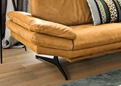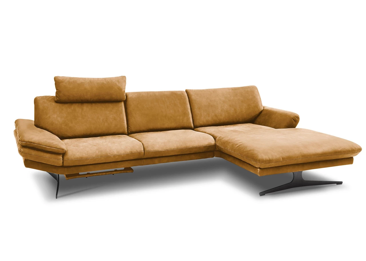 Die Longchairgarnitur ARANCA aus dem Hause MONDO ist der ideale Begleiter für Ihr Wohnzimmer. Das schicke Design wird Ihren Wohnbereich in eine echte Wohlfühloase verwandeln. Die Garnitur ist mit einem Lederbezug in bernstein bezogen, passend dazu sind die pulverbeschichteten Kufenfüße in einem schicken anthrazit gehalten. Die Sitzhärte superlastc soft, sowie die elektrische Fußverstellung, sowie die Kopfstütze im äußeren Sitz sorgen für höchsten Sitzkomfort. Die Abschlussrecamiere ist mit einem abklappbarem Seitenteil ausgestattet.