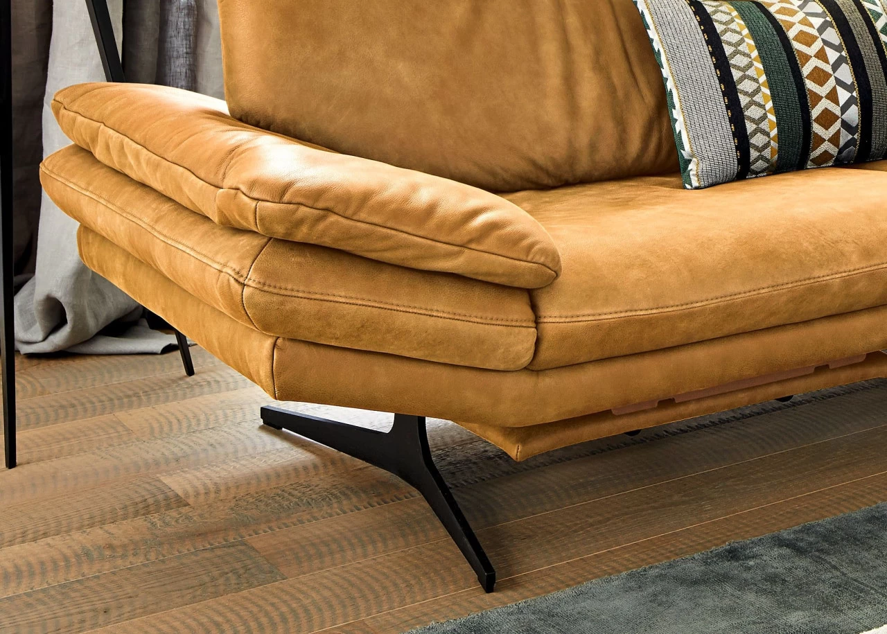 · Longchairgarnitur Bezug Leder Longo bernstein. Fuß Kufe anthrazit pulverbeschichtet. Sitzhärte superlastic soft. Inklusive elektrischer Fußteilverstellung im äußeren Sitz und Kopfstütze, Abschlussrecamiere mit abklappbarem Seitenteil. Exklusive Dekokissen.