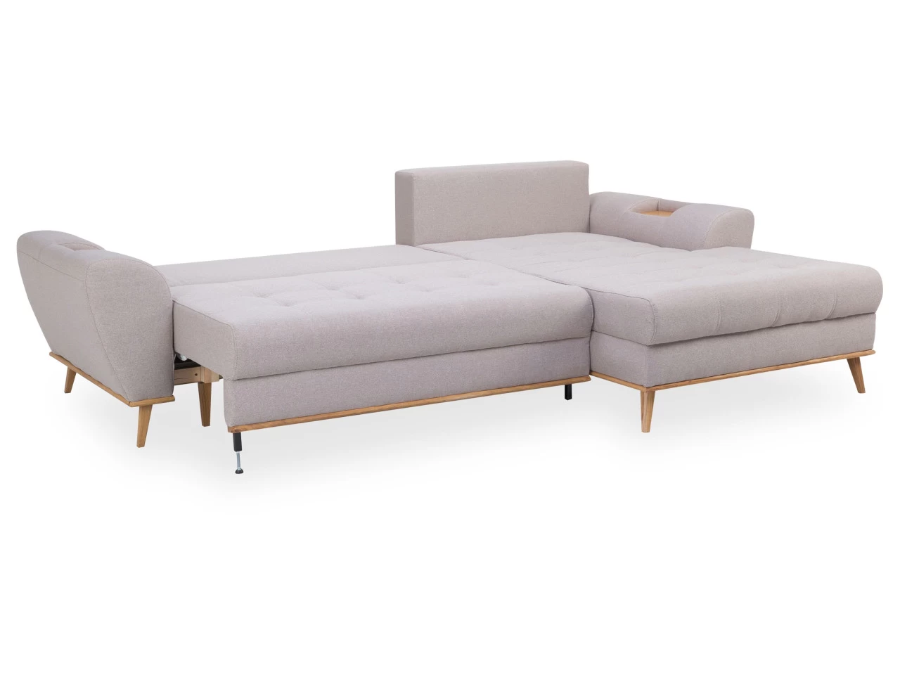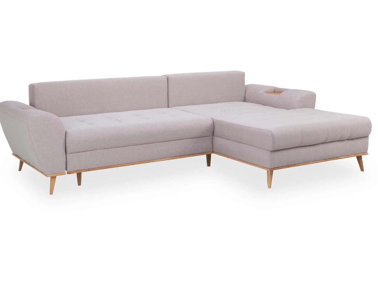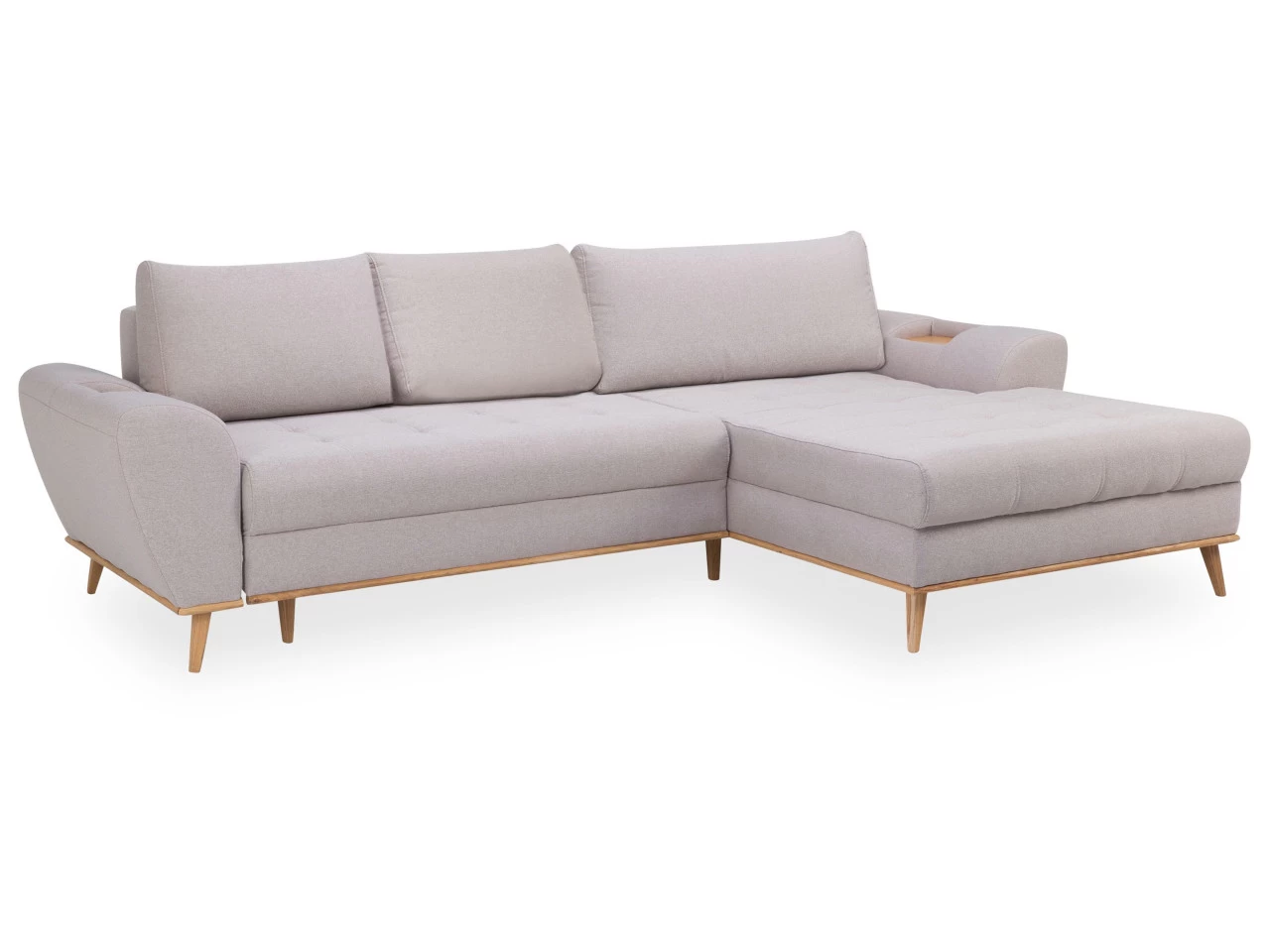 Aus Sitzkomfort wird Sitzgenuss und zwar mit dieser gemütlichen Verwandlungsecke NUNO. Insgesamt ist die Couch mit beigefarbigem Webstoff bezogen und lässt sich hervorragend in eine moderne Einrichtung integrieren. Mit der Ausstattung zweier Holzablagen, können Sie problemlos Tassen oder Gläser abstellen. Auch die vorstehend rechts montierte Ottomane unterstützt das angenehme Sitzerlebnis. Zudem verfügt diese Verwandlungsecke über eine Schlaffunktion, sodass sie sich bestens für ein Nickerchen oder auch als Schlafplatz für Ihre Gäste eignet. Ein weiterer Vorteil stellt der Bettkasten dar, in dem Sie diverse Bettutensilien verstauen können. Genießen Sie Ihre freie Zeit mit Ihren Liebsten auf dieser Verwandlungsecke!
