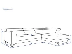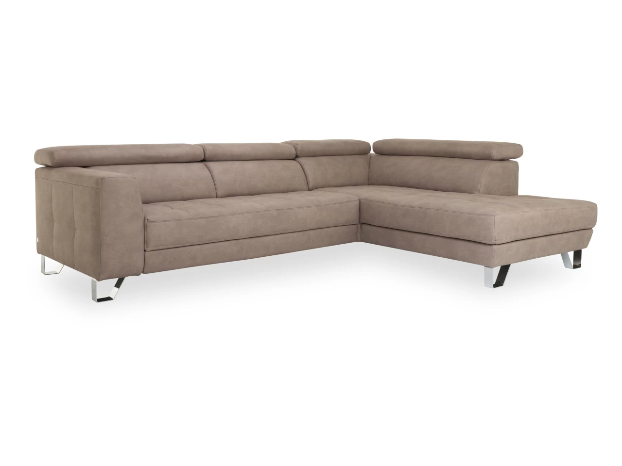 Dessin EMS19 olive grey, 100% PES, TKZ gemäß Herstellerangaben, bestehend aus: Sofa 2 Sitzer AT vorst. li -210-156, Eckbank m. Abschluss vorst. re -946-180, inkl. Kopfteilverstellung, Fuß C275, Rücken Nessel/Spannstoff Kissen und Funktionen auf Wunsch