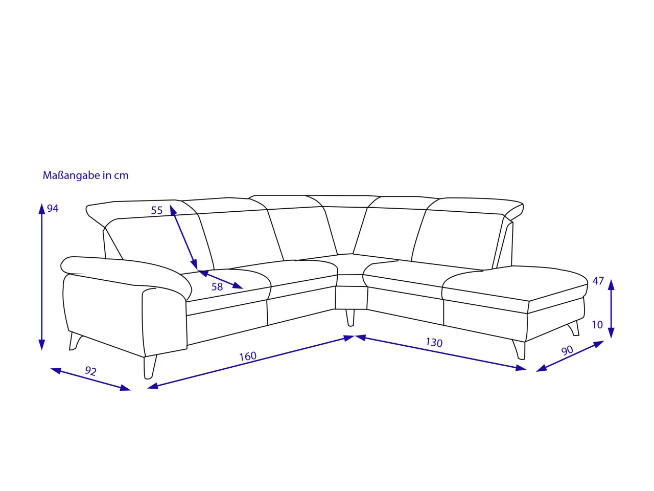 · Sofa 2,5 Sitzer Armteil vorstehend links mit motorischer TV-Funktion