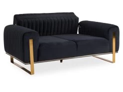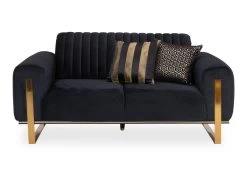 Bezug Webstoff Samt schwarz, Sitz auf Nosagunterfederung, Füße Metall gold lackiert besteht aus: 1 x 3er Sofa, 1 x 2er Sofa und 1 x Sessel