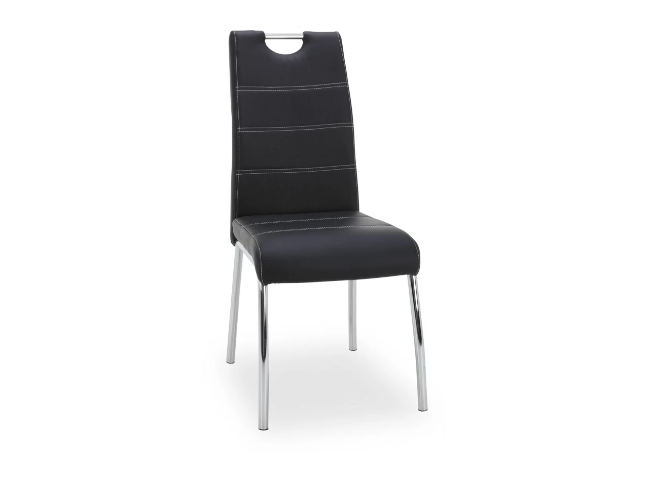 Der Polsterstuhl Flori gefällt durch sein schlichtes Design. Er besteht aus einem verchromten Metallgestell aus Rundrohr und kommt mit einem Kunstlederzug. Zudem zeigen sich der Sitz und der Rücken mit Doppelnähten und der Stuhl verfügt über ein praktisches Griffloch. Durch die Sitzhöhe von 47cm und die Sitztiefe von 43cm wird Ihnen ein bequemes Sitzerlebnis geboten. Maximale Belastbarkeit 120kg.