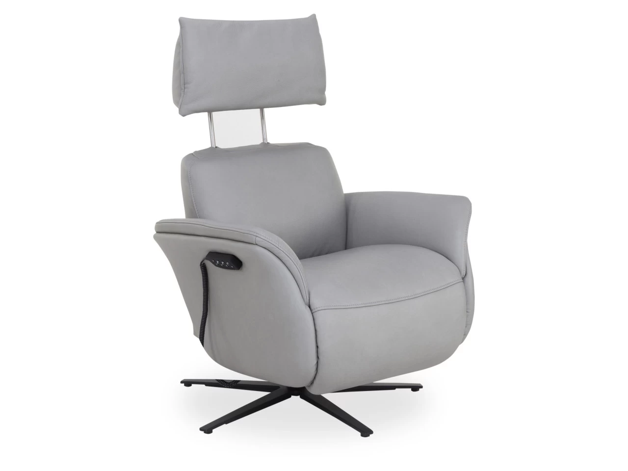 · mit elektrischer Verstellung von Rücken, Fußteil und Kopfstütze durch 2 Motoren mittels einem außenliegenden Akku mit Ladestation in Fb. silber