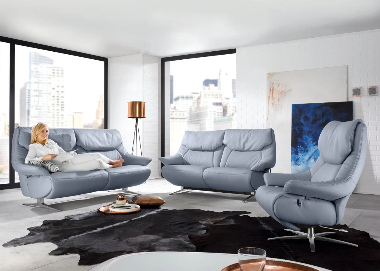 Der Relaxsessel MALU aus dem Hause MONDO besticht durch sein freundliches Design und seiner hochwertigen Verarbeitung. Mit diesem Sessel schaffen Sie eine gemütliche Sitzmöglichkeit, die Ihren Wohnbereich in eine echte Wohlfühloase verwandeln wird. Der Bezug aus Longlife-Leder in sky ist passend zu dem verchromten Metall-Sternfuß gewählt. Der Rücken ist dabei ebenfalls echt bezogen. Der Sessel ist mit einem superlastic soft Sitz und einer Rückenverstellung mit Gasdruckfeder und manueller Kopfteilverstellung ausgestattet und ermöglicht somit einen hohen Sitzkomfort.