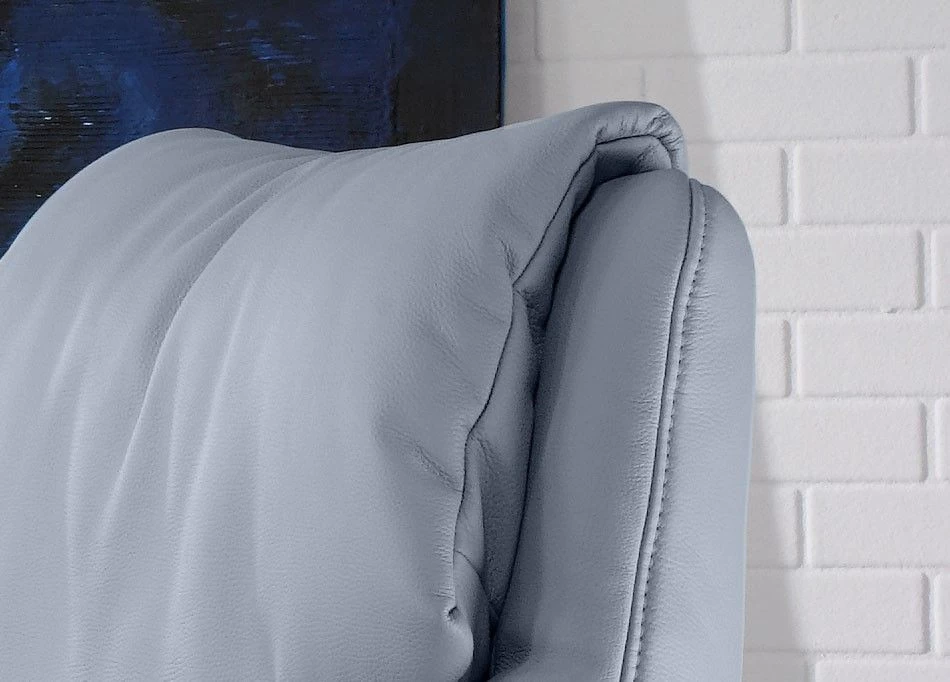 · Bezug in Leder Longru sky. Sitz Superlastic soft. Rücken echt. Fuß Metall-Sternfuß verchromt, höhenverstellbar. Inklusive Rückenverstellung mit Gasdruckfeder und manueller Kopfteilverstellung. Exklusive Dekoration.
